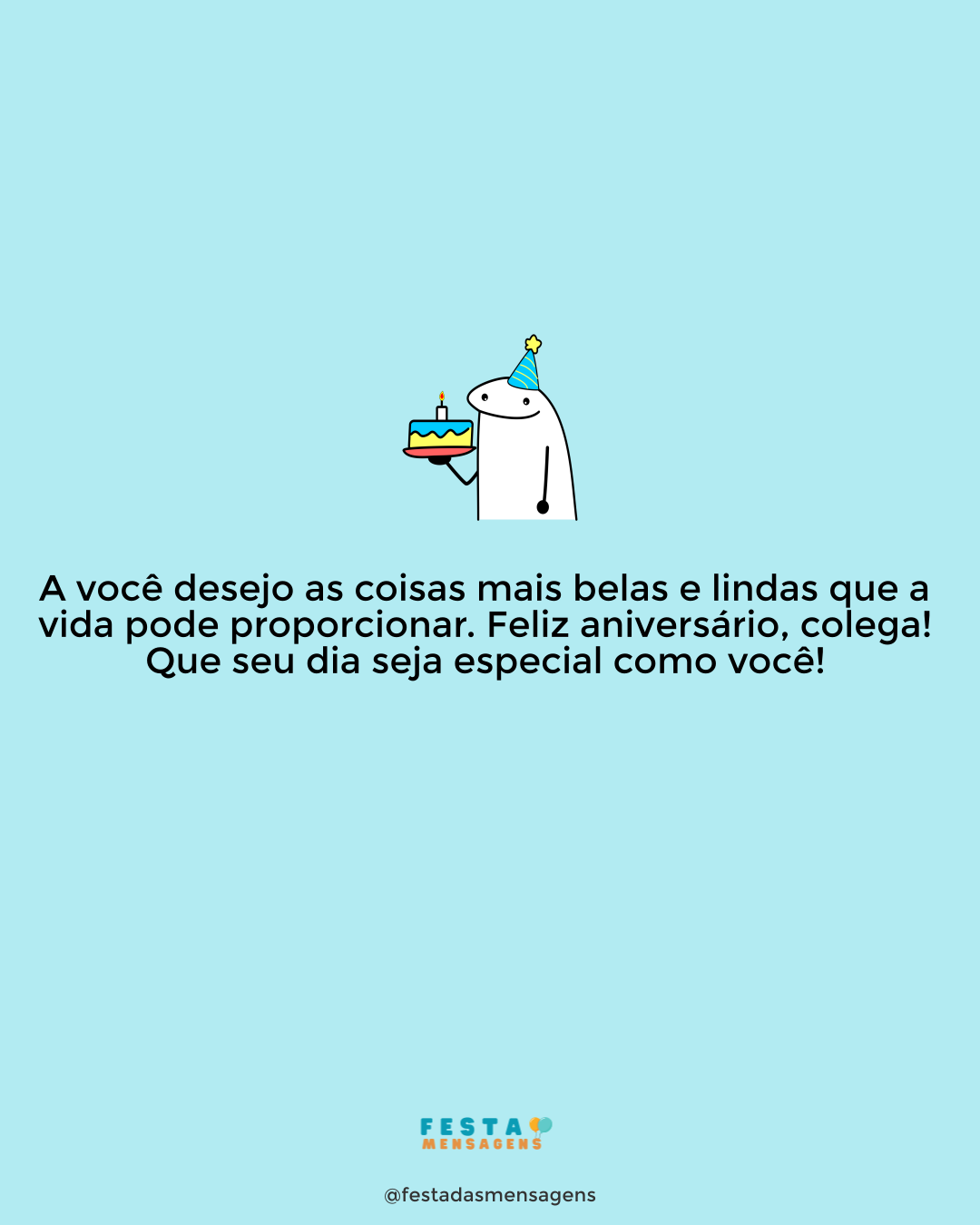 Hoje você manda, ordena, indica e todo mundo terá de respeitar, porque é seu grande dia; seu dia especial. Hoje é seu aniversário. Parabéns! Coloque um sorriso no rosto e jamais o perca, porque você merece ser feliz não só hoje, mas todos os dias. Feliz Aniversário!