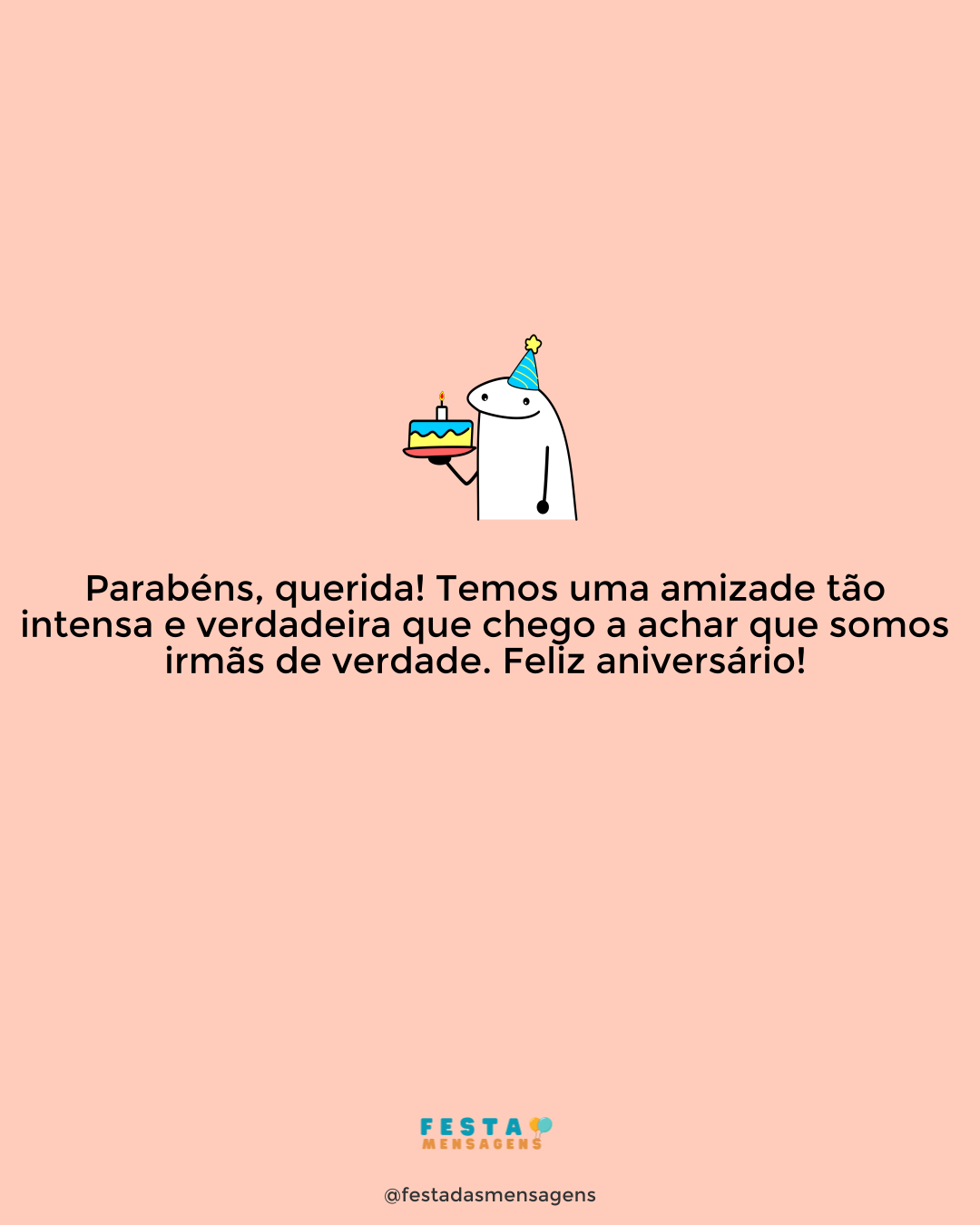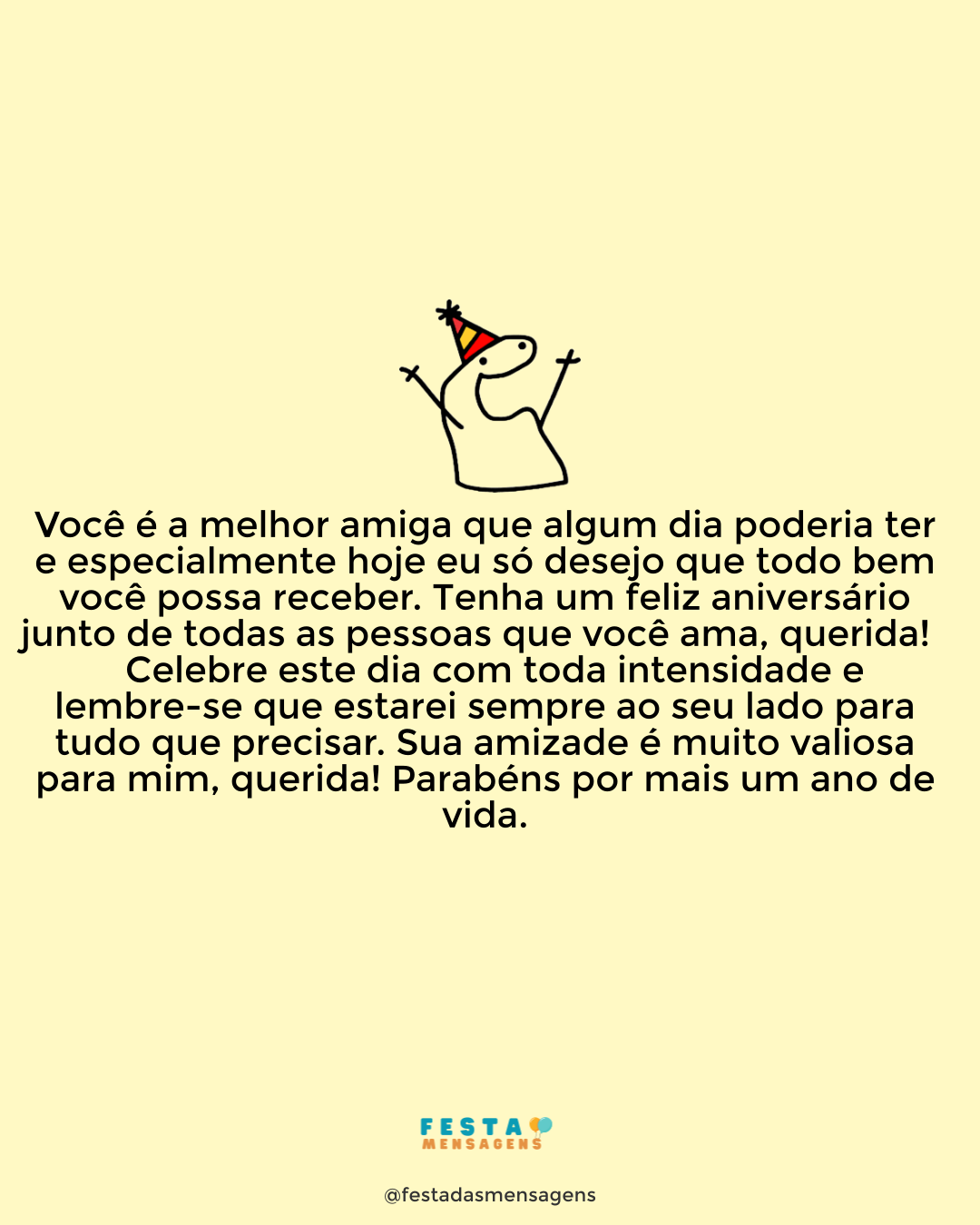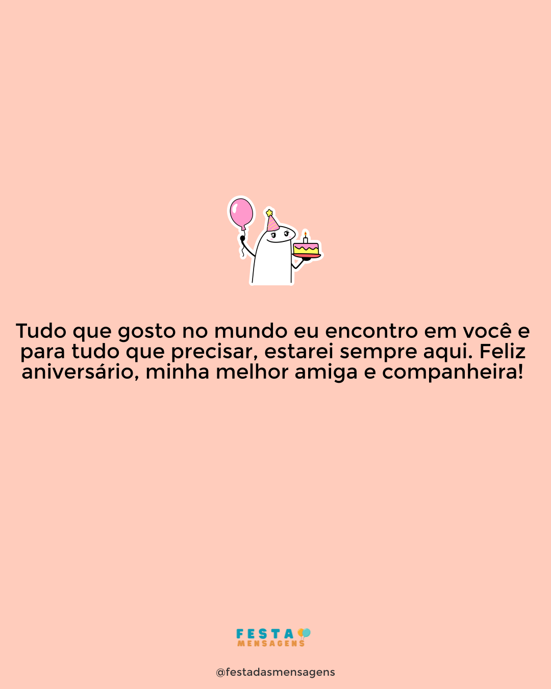 Mais do que uma amiga, você é e sempre será uma companheira de vida. Querida, estou aqui para lhe desejar um aniversário maravilhoso, repleto de coisas boas, de presentes incríveis e com tudo que você merece! Divirta-se muito ao lado das pessoas que mais ama e que estão sempre junto quando você mais precisa. Eu sou uma delas – sei mesmo que sou! Feliz aniversário!