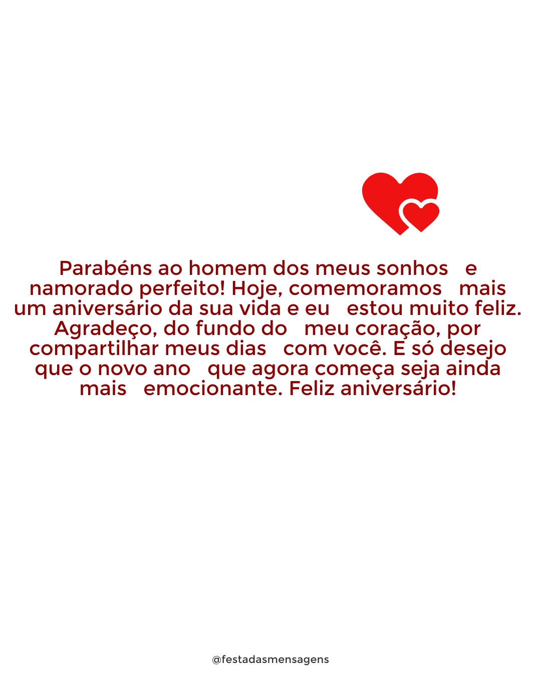 Hoje é um dia especial para você e eu não poderia deixar esta data passar sem lhe parabenizar por mais um ano de vida! Feliz 31 anos! Que seja de muita saúde, alegria, conquistas e aprendizado, sempre com muito crescimento e amadurecimento. Você já é uma pessoa maravilhosa e hoje acaba de ficar ainda mais! Parabéns e muitas felicidades!