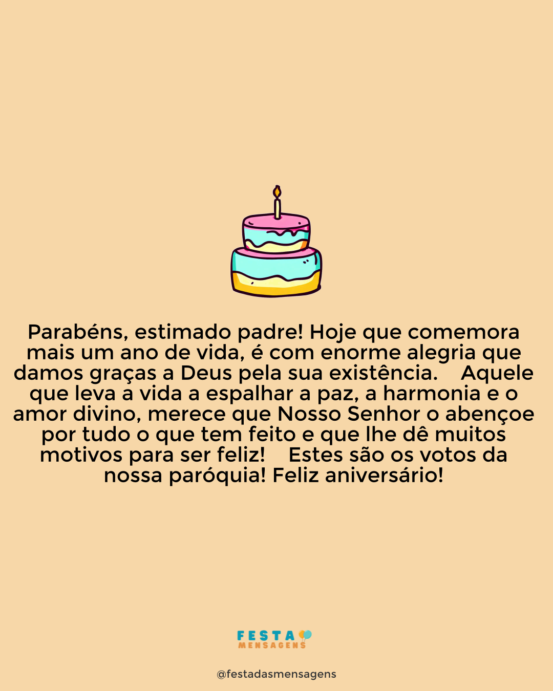 Vou pedir ao nosso Deus Pai Amado Para cobrir-lhe com o Manto Sagrado E conceder-lhe sua divina proteção Dando luz e conforto ao seu coração. Vou orar ao Nosso Deus Pai querido E fazer um importante pedido: Para Ele emanar suas melhores energias E trazer-lhe na vida as melhores alegrias. Vou rezar com muita fé, esperança e louvor Para que goze de saúde, paz e prosperidade Ganhe o merecido carinho e receba muito amor Meus parabéns nesta data tão querida! Um lindo, ótimo e feliz aniversário Com muitos e muitos anos de vida!