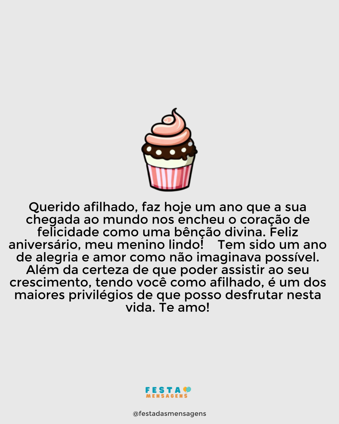 Parabéns, querido padrinho! Hoje é o seu dia especial e gostaria de expressar todo o carinho que sinto por você e lhe dar um grande abraço. Como seu afilhado, sinto uma gratidão e um orgulho enormes por ter um padrinho tão fantástico quanto você. Meu desejo é que tenha muita saúde, paz e amor na vida! Feliz aniversário, querido padrinho! Parabéns!