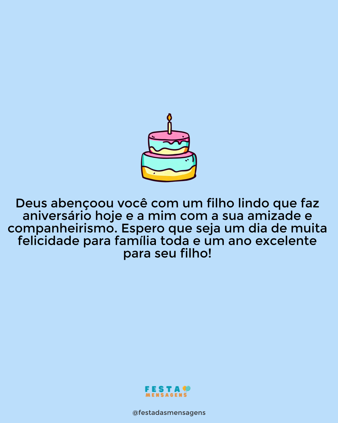 Os estudos comprovam: as pessoas que fazem mais aniversários são as que vivem mais anos. Pensando assim, você está no bom caminho, e quem sabe não chega a ser um recordista?! Mas sabe de uma coisa, melhor do que fazer aniversário é festejar. Ah, e também dizem que quem comemora os anos é mais feliz e tem mais saúde. E quem apaga as velinhas do bolo de aniversário também tem mais sonhos realizados! Neste dia tão especial, comemore com toda a alegria o seu aniversário, faça os seus pedidos especiais e apague as velinhas do seu bolo. Aproveite as oportunidades que aparecem na sua vida, trabalhe duro e seja muito feliz. Desejo muita saúde, paz, amor e alegrias. Parabéns!