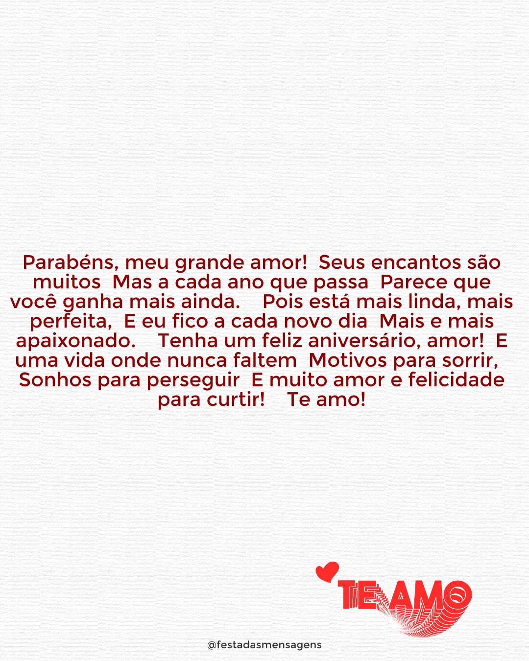 Com todo meu amor e carinho eu lhe desejo um aniversário lindo e especial. Parabéns! 🍾