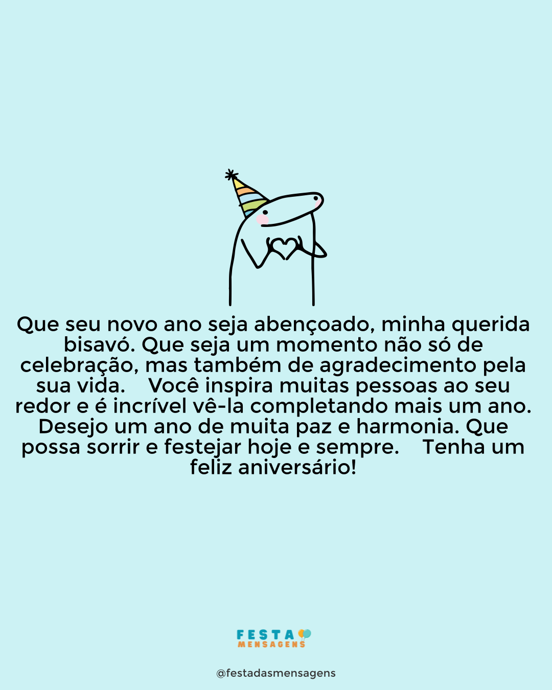 Avó guerreira, mulher forte e exemplar, que o seu dia esteja à altura da pessoa incrível que você é. Feliz aniversário! Nunca esqueça que você é um verdadeiro exemplo para mim. Sempre me inspiro na sua trajetória, na sua vontade de vencer. Que Deus ilumine o seu caminho hoje e sempre e que possa sempre encontrar felicidade nas pequenas vitórias. Você é uma inspiração, um exemplo a ser seguido e eu desejo um novo ano de vida maravilhoso. Feliz aniversário!