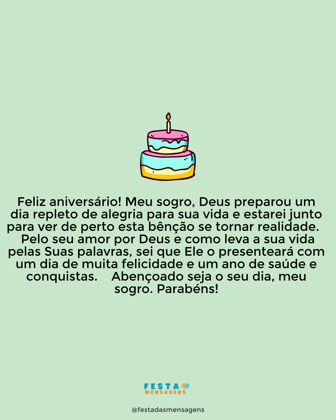 O Senhor tem sido muito bondoso com você, meu neto querido. E especialmente hoje eu sinto que ele lhe preparou uma belíssima jornada. Aproveite muito seu aniversário, meu bem. Parabéns por mais um ano! Torço para que os próximos meses sejam igualmente abençoados. Que Deus continue olhando por você e cuidando de todos seus passos. Ame-O do jeito que Ele o ama e assim seja feliz todos os dias. Tenho uma grande admiração por você. Na verdade, devo ser a pessoa mais agradecida deste mundo por ter o neto mais incrível do planeta. Mais do que o meu grande amor você é a grande razão da minha vida e felicidade constante. Que o Senhor sempre o abençoe. Feliz aniversário, querido.