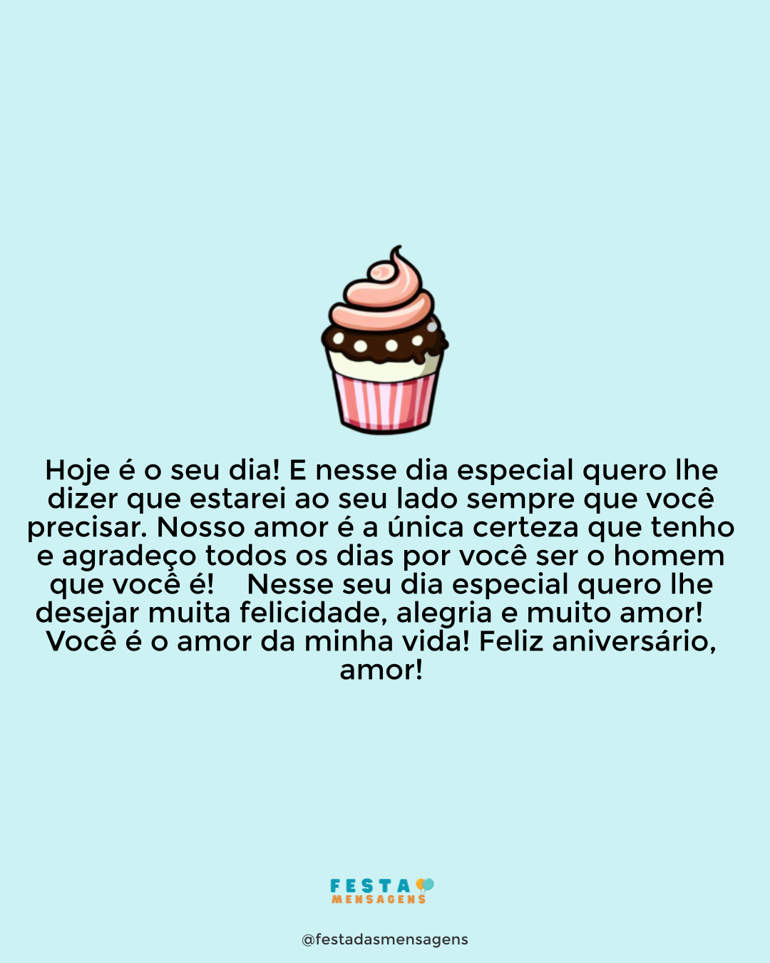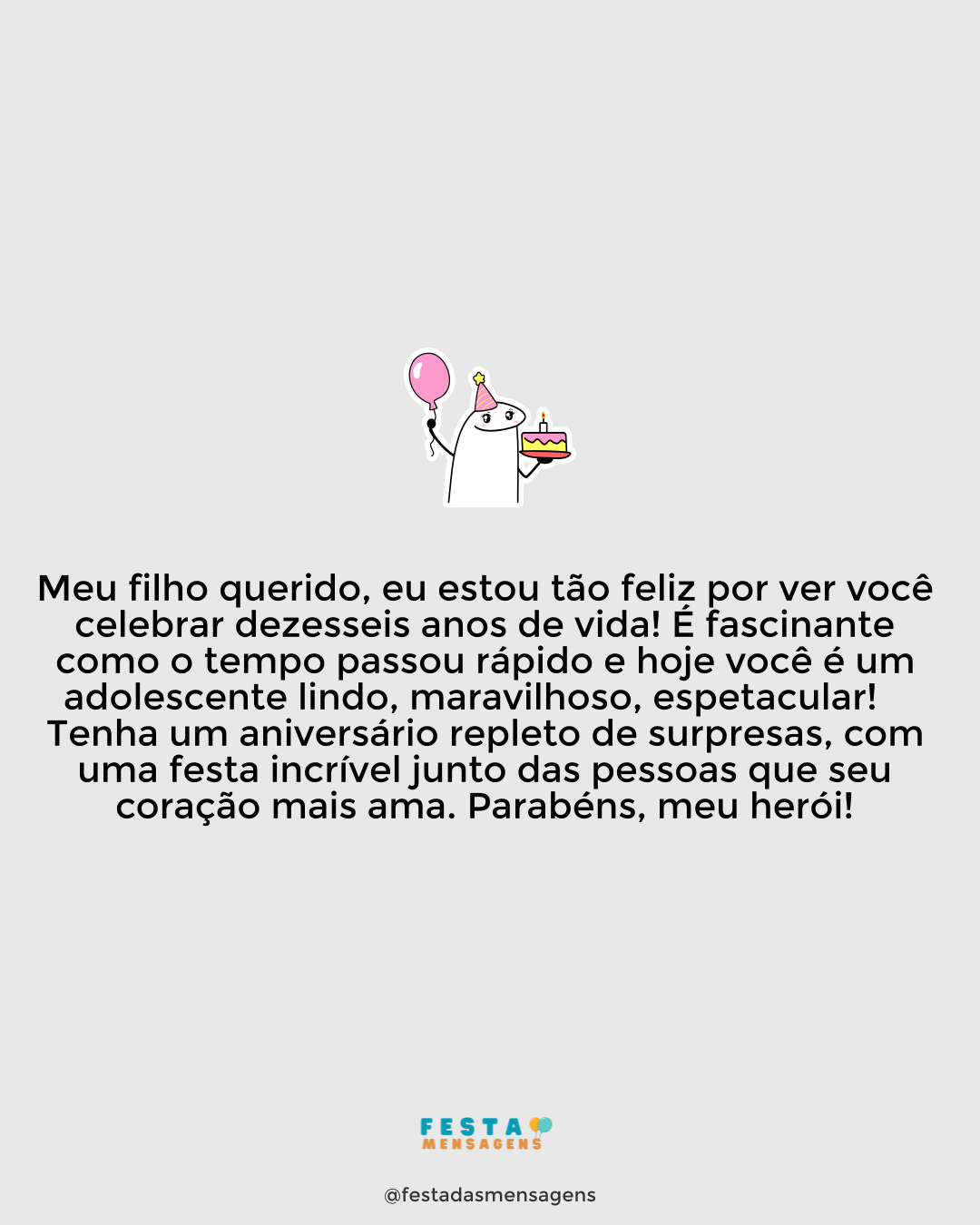Eu sou feliz, muito feliz por ter um neto lindo e maravilhoso como você que hoje completa mais um aniversário de vida! Divirta-se e aproveite esta data para celebrar o amor e a fé. Que Deus sempre acompanhe seus passos! Parabéns, meu amor! Rodeie-se de sensações positivas e de pessoas ainda mais especiais, não só hoje, mas todos os dias da sua vida!