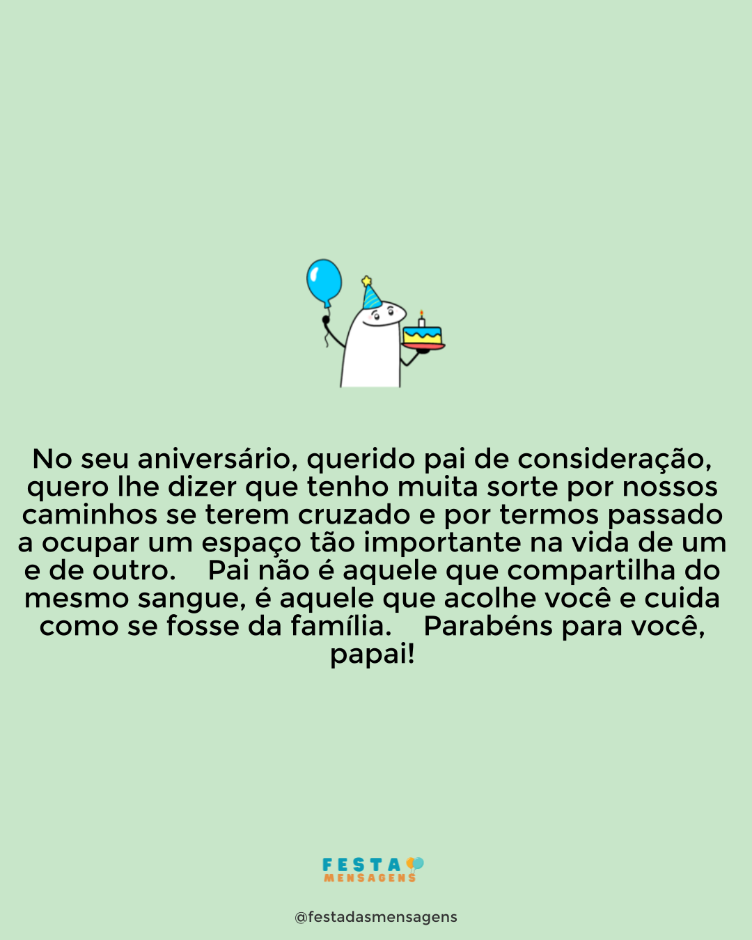 Hoje é o seu dia especial e, como seu afilhado, não podia deixar de parabenizar a pessoa maravilhosa e de gtande coração que Deus escolheu para meu padrinho. Este ano não poderei estar presente para lhe dar um forte abraço de parabéns, mas estarei aqui comemorando o seu aniversário da mesma forma. Adoro você, querido padrinho! Deus o abençoe e proteja sempre!