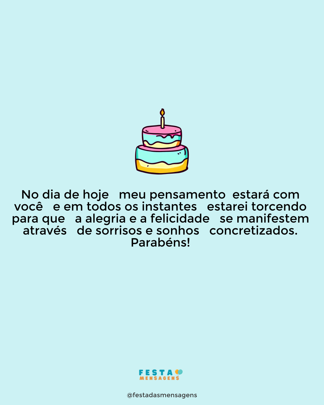 Hoje é o seu aniversário. Cada dia que vivemos é um agradecimento a mais, por tudo o que recebemos do Senhor. Querido irmão, eu oro para que tenha uma vida longa para ser vivida e que o Senhor seja um mestre a guiar seus passos para o bem, e para o amor a todos que o cercam. Ouça com atenção a palavra da verdade e da salvação, somente ela pode nos trazer a felicidade. Jamais afaste Deus do seu coração, pois Ele é o nosso verdadeiro e único caminho. Feliz aniversário, meu irmão, na paz de Cristo!