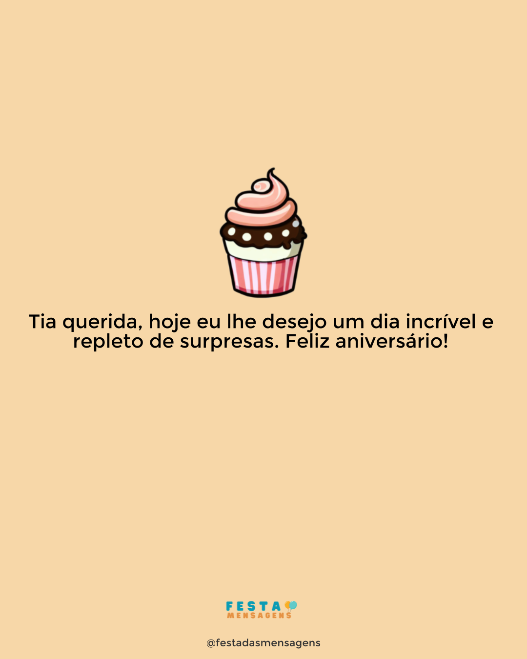 Como sou sua tia e madrinha me sinto no direito de desejar duas vezes felicidades para você. Sinto que fui duplamente abençoada por estar duas vezes mais perto e mais presente em sua vida. Você é uma pessoa maravilhosa, da qual eu me orgulho muito. Desejo que Deus continue lhe dando esta grande capacidade de sonhar e muita determinação para realizar todos os seus sonhos. Desejo que o mundo seja bom para você, e que lhe faça sofrer apenas o suficiente para você aprender e crescer tudo que precisa. Desejo que você sinta muito amor, que ame e seja amada de verdade, porque o amor é a coisa mais linda do mundo. E desejo muita saúde, paz, felicidade e que os anos lhe tragam cada vez mais sabedoria. E desejo tudo isso em dobro, como tia e como madrinha!