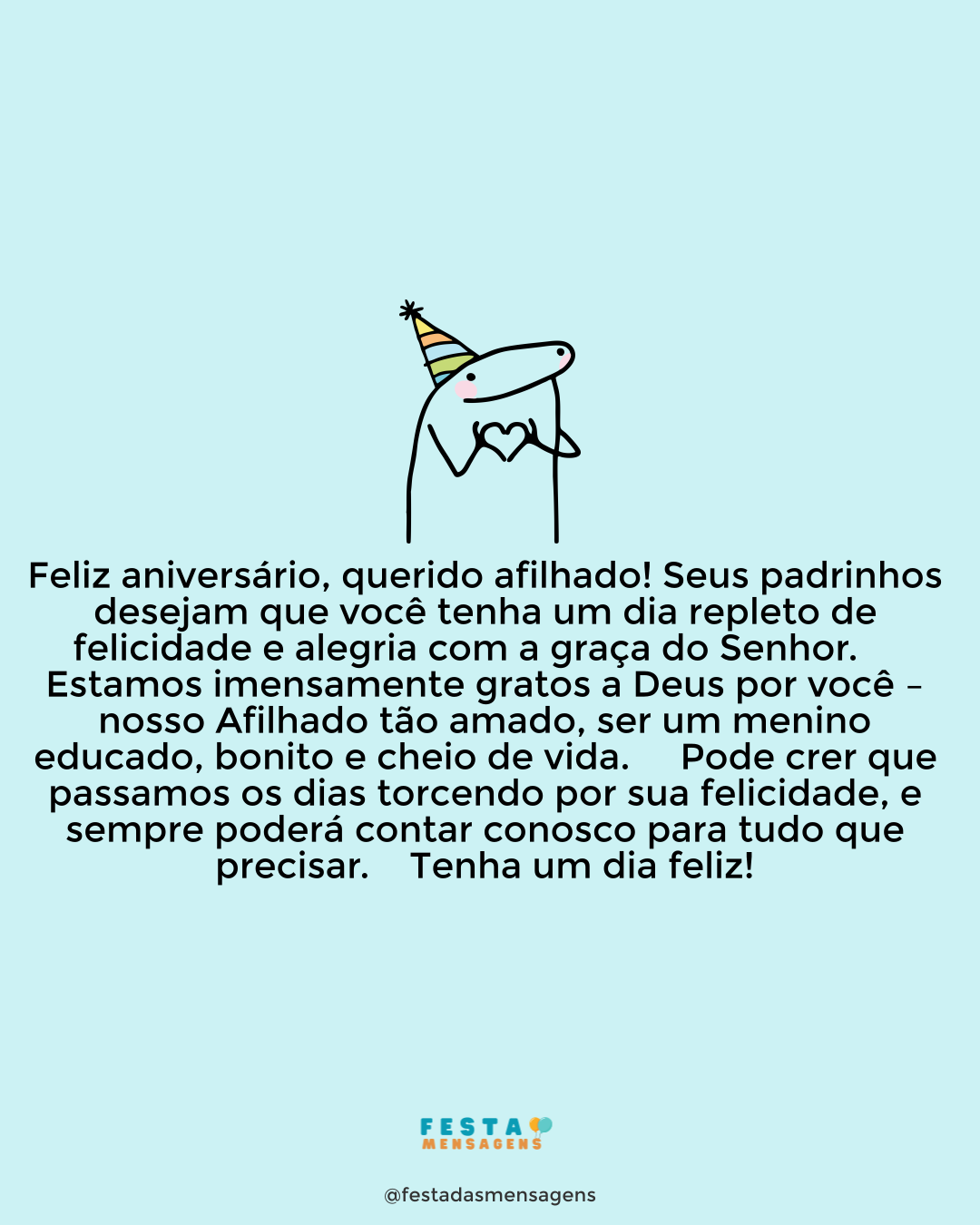 Parabéns para a minha adorada afilhada! Espero que o dia em que completa 15 anos seja inesquecível. Desejo que nunca lhe falte alegria, amor e saúde. Aproveite todos os momentos do seu dia com pessoas que trazem energia positiva para sua vida. Corra atrás dos seus sonhos e nunca desista de nada que quer realmente. Tenho muita sorte em ter uma afilhada como você. Feliz Aniversário! Te amo!