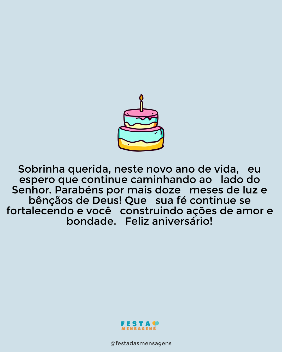 Netinha, quero desejar um aniversário repleto de alegrias. Você é uma menina muito especial e eu tenho um orgulho enorme em ser sua avó. Desde que você nasceu, eu acompanho seu crescimento e amadurecimento e devo dizer que é emocionante ver você se tornar uma mulher. Aproveite seu dia e sorria muito, pois este sorriso ilumina o mundo inteiro! Parabéns, minha netinha linda!