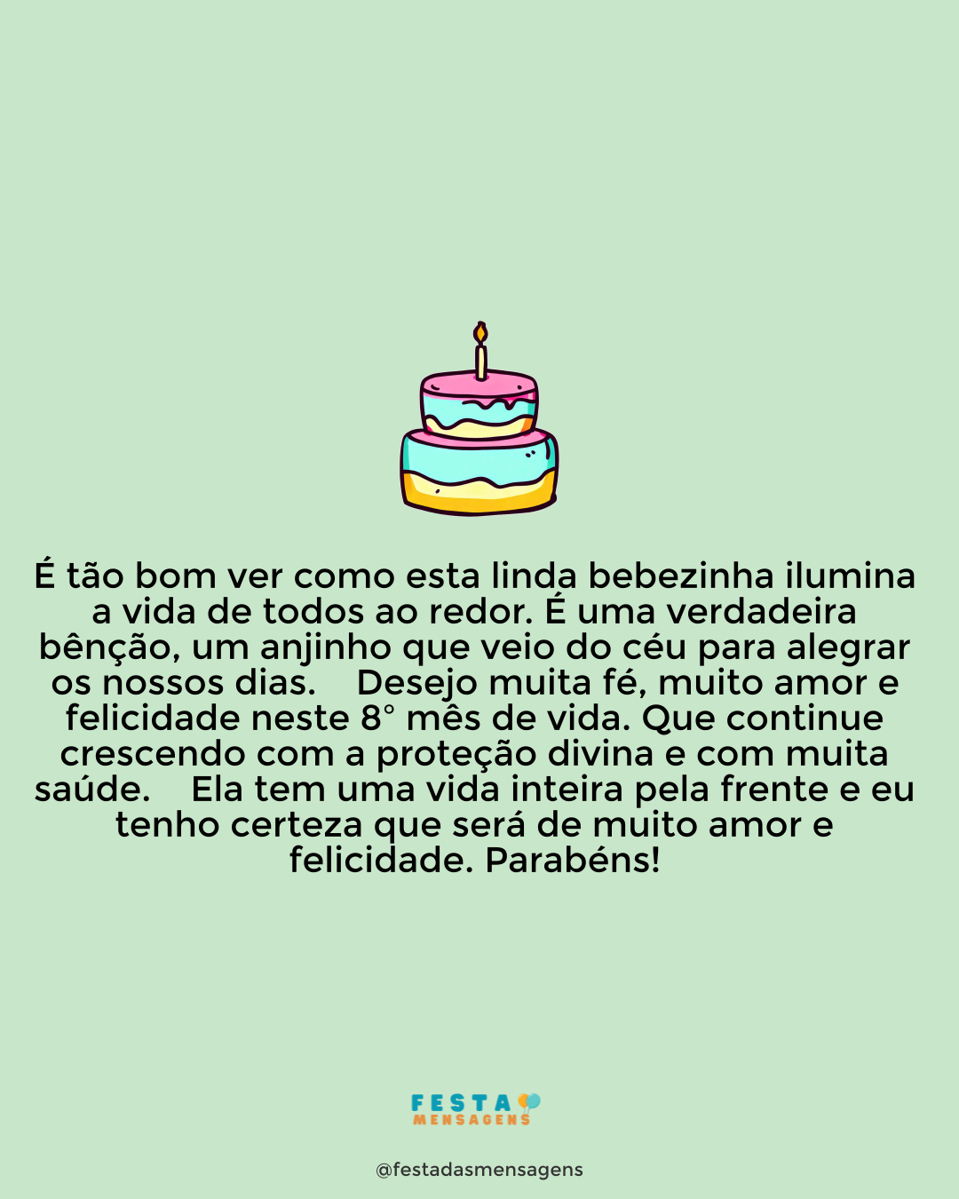 Minha querida amiga e irmã que a igreja me apresentou, hoje é o seu dia e fico muito feliz em ver como as bênçãos que estão presentes na sua vida ficam mais evidentes em datas como esta. Parabéns por mais um aniversário! Deus está olhando por você e fará deste dia uma celebração digna de ficar marcada na sua memória para sempre. Aproveite muito ao lado da família e dos amigos. Um grande abraço e votos de um feliz aniversário!