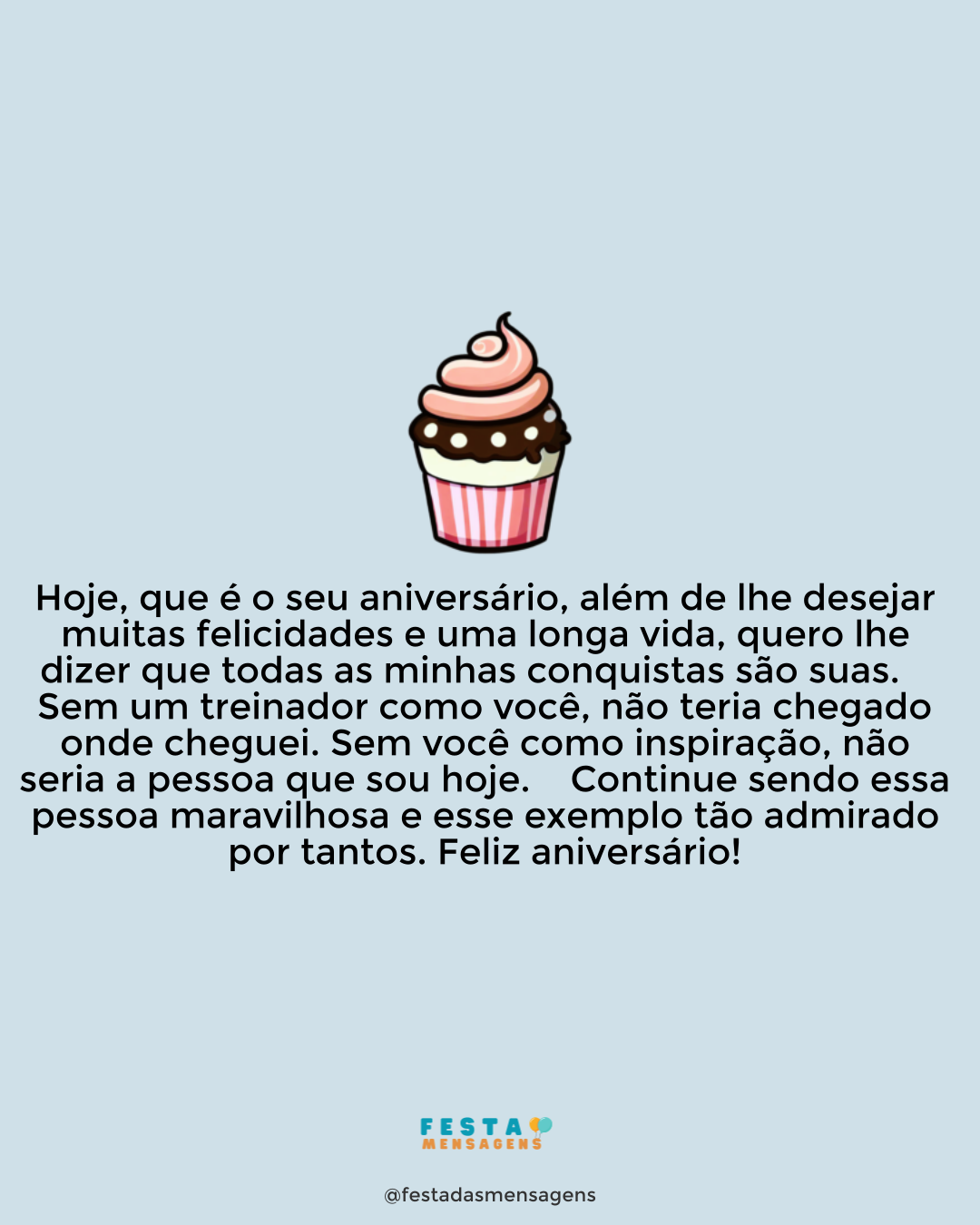 Não há um só dia em que eu me esqueça do que vivemos na sala de aula, especialmente hoje que você completa mais um ano de vida. Querida professora, eu lhe desejo um aniversário muito, muito feliz! Divirta-se junto das pessoas que mais ama e lembre-se que eu, tal como muitos alunos, temos você e seus ensinamentos no nosso pensamento. Orgulhe-se da professora que é, foi e sempre será! Parabéns por mais um ano de sabedoria!