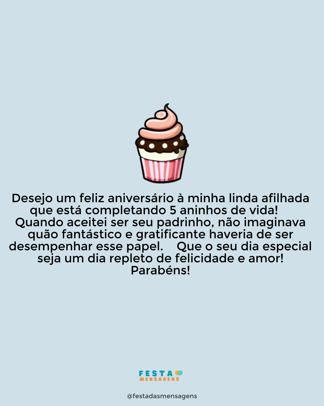 Parabéns, querida prima e comadre! Tive a sorte de encontrar na família alguém que é ao mesmo tempo amiga, conselheira, apoiante, prima e comadre. De todos na família, é de você que eu mais gosto. Na hora de escolher uma madrinha para o meu filho, não tive dúvidas, só podia ser você a eleita. Tenha um dia de aniversário com toda a alegria que você merece!