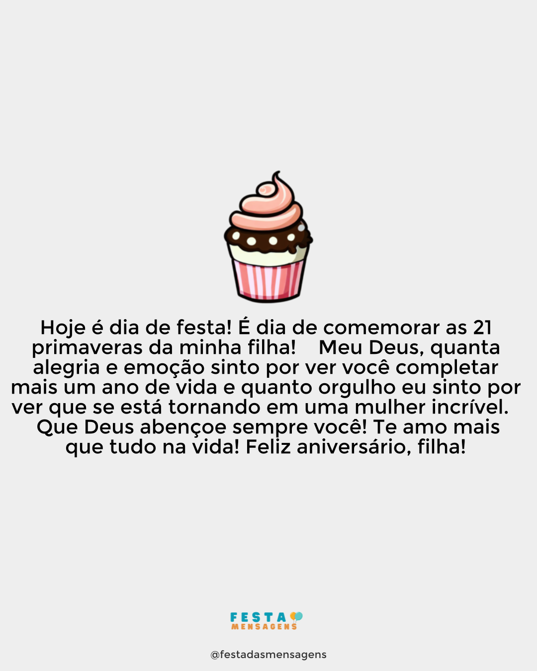Feliz aniversário, filha amada! Como mãe, é um orgulho ver você crescer e se tornar uma mulher incrível que completa hoje 34 anos de vida. Não há nada melhor que ver a nossa filha crescer e realizar os seus sonhos. Fico muito feliz com os seus sucessos, é como se cada conquista sua fosse um pouco minha também. Agradeço a Deus por me ter dado uma filha maravilhosa que eu tanto amo! Parabéns, filha querida!