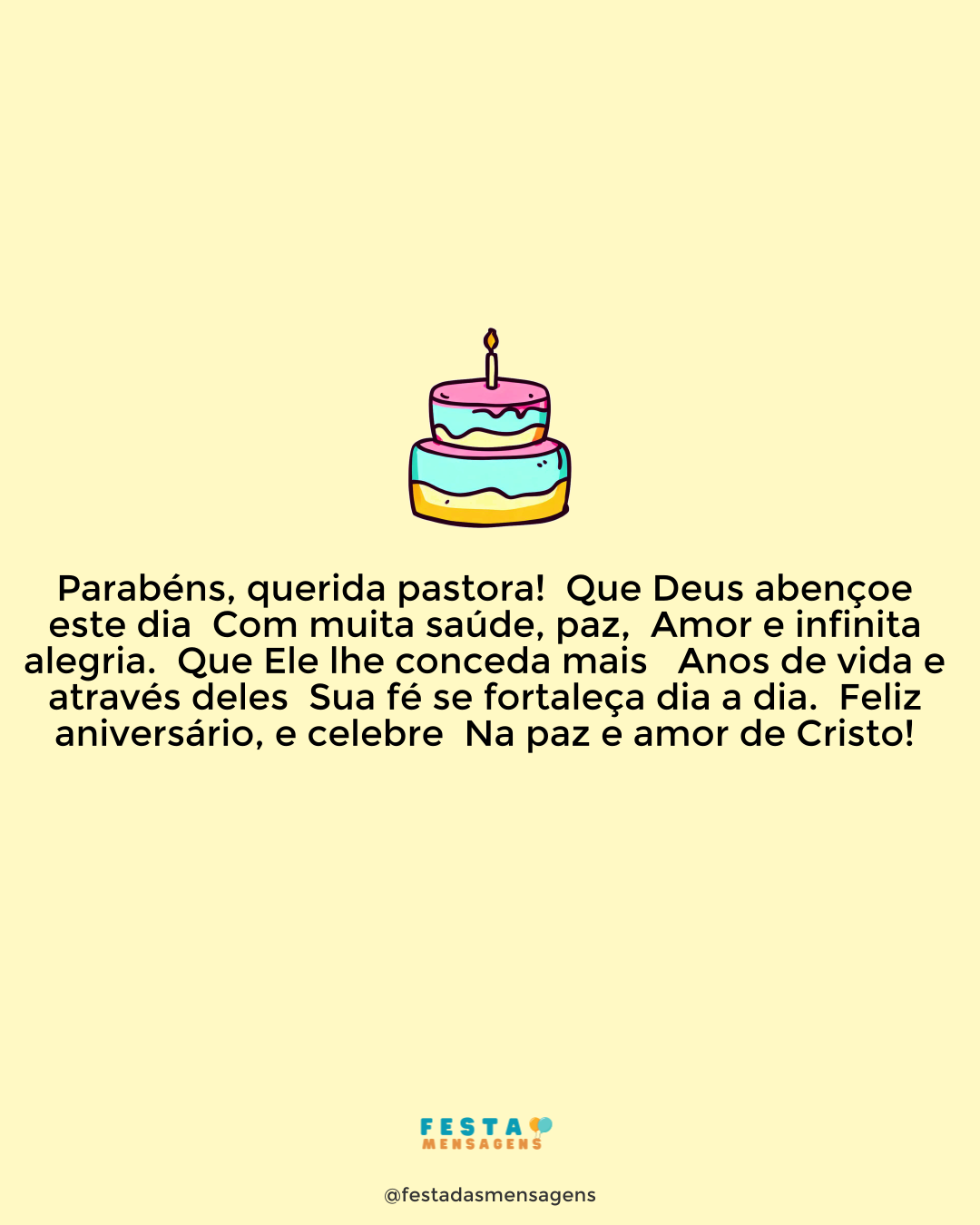 A vida é um milagre que se renova diariamente e se celebra com entusiasmo e felicidade uma vez por ano, no dia do nosso aniversário. Hoje é dia de celebrar o milagre da sua vida, o dia do seu nascimento. Que hoje seja um dia muito especial e que você se sinta renascida, que sua fé seja fortalecida e tenha sempre confiança no amor de Deus. Tenha muita paz, saúde e luz. Que Deus lhe conceda muitas bênçãos! Parabéns!