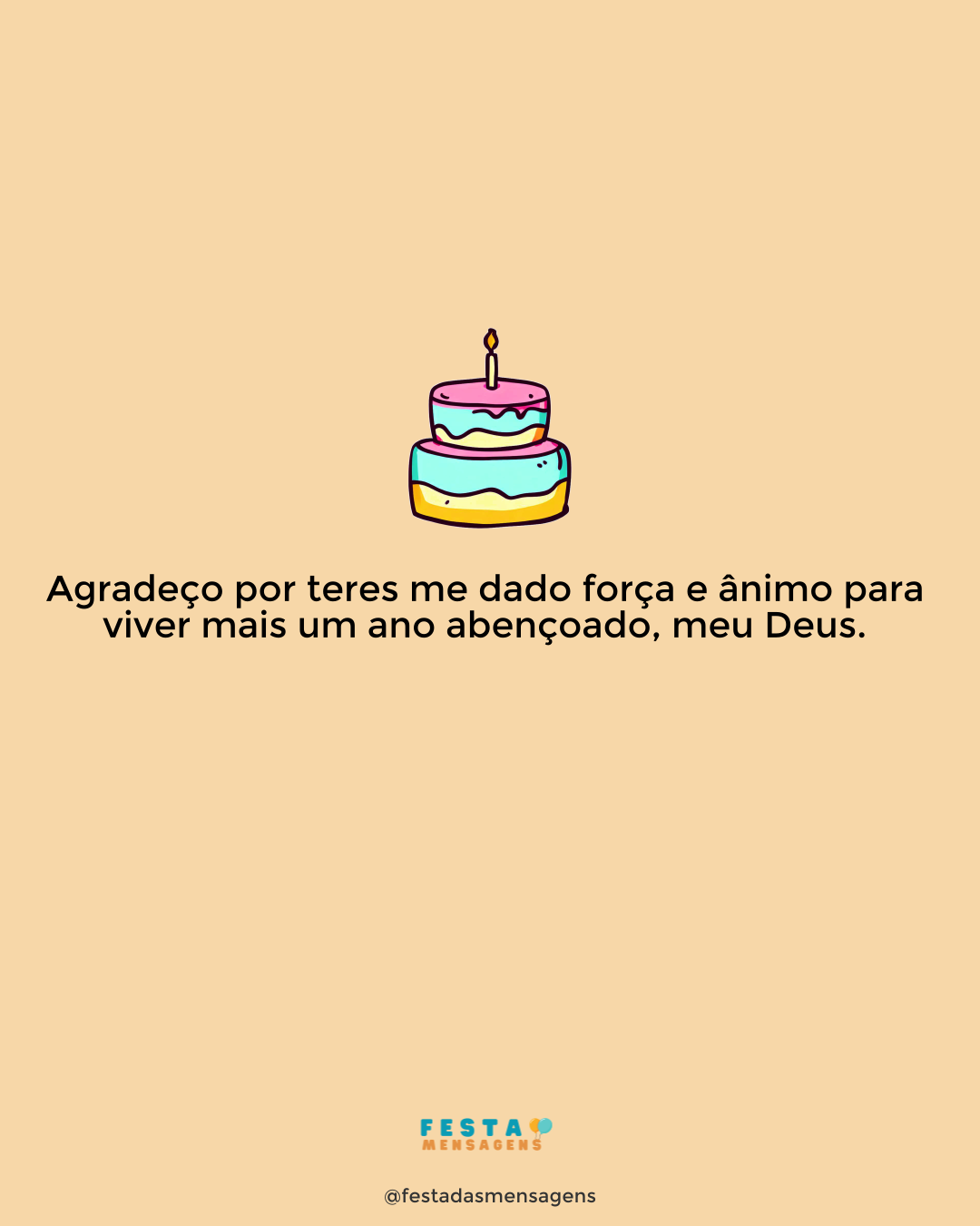 "Mostra-me, Senhor, o fim da minha vida e o número dos meus dias, para que eu saiba quão frágil sou. Deste aos meus dias o comprimento de um palmo; a duração da minha vida é nada diante de ti. De fato, o homem não passa de um sopro." Salmos 39:4-5 Não sabemos quantos dias iremos passar neste mundo, por isso, devemos nos sentir abençoados por cada aniversário que passamos e por tudo o que Deus nos tem dado. Que o Pai do Céu abençoe você e que a cada novo ano de vida lhe traga muitas oportunidades de sucesso e muitas bênçãos! Feliz aniversário!
