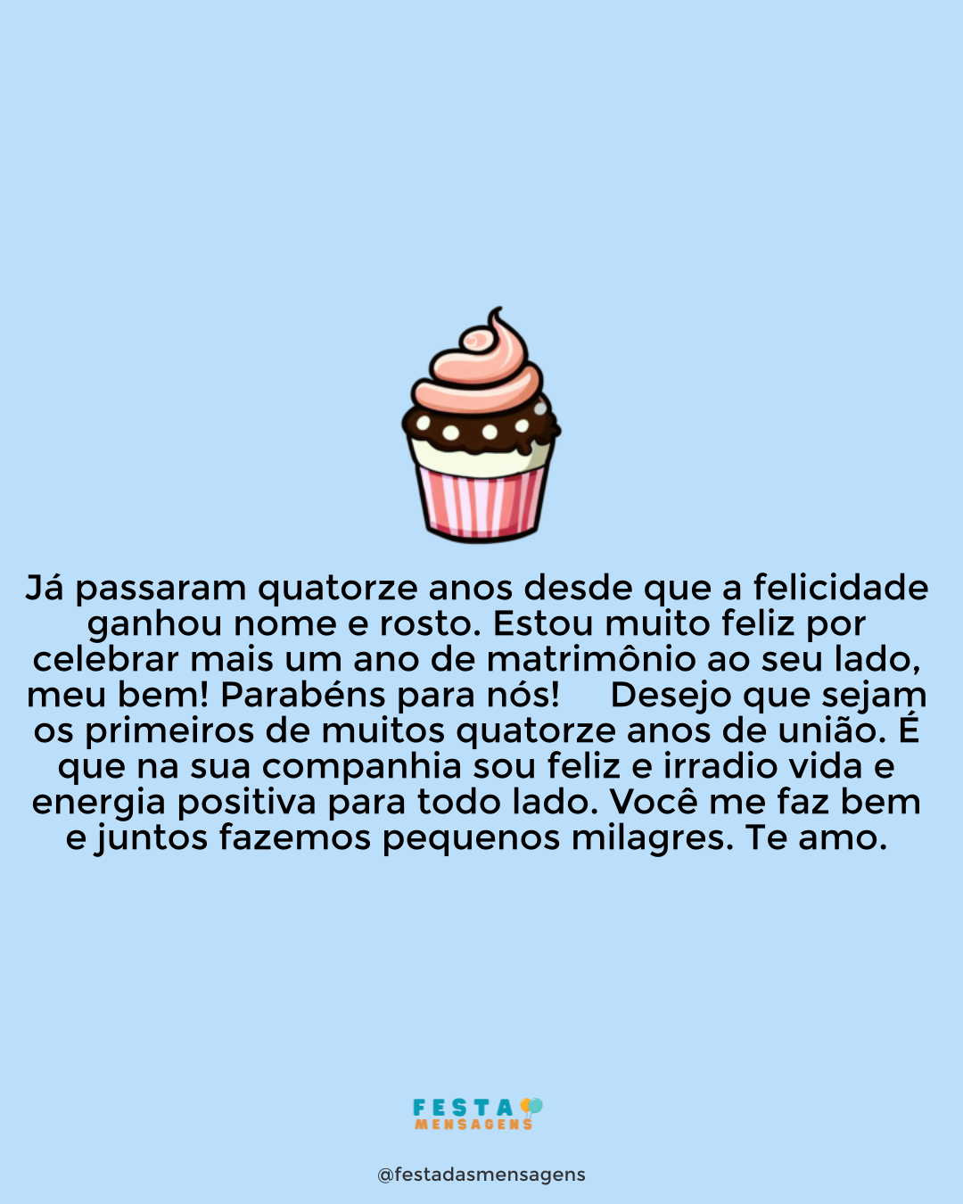 Hoje, o homem mais completo do mundo e o grande amor da minha vida celebra mais um aniversário. Nada me deixa mais feliz do que compartilhar este dia com você, meu bem. Parabéns! Que o amor entre nós não pare de crescer e a alegria de viver esteja sempre presente no seu coração. Prometo amar e cuidar de você com empenho e dedicação toda vida. Feliz Aniversário!