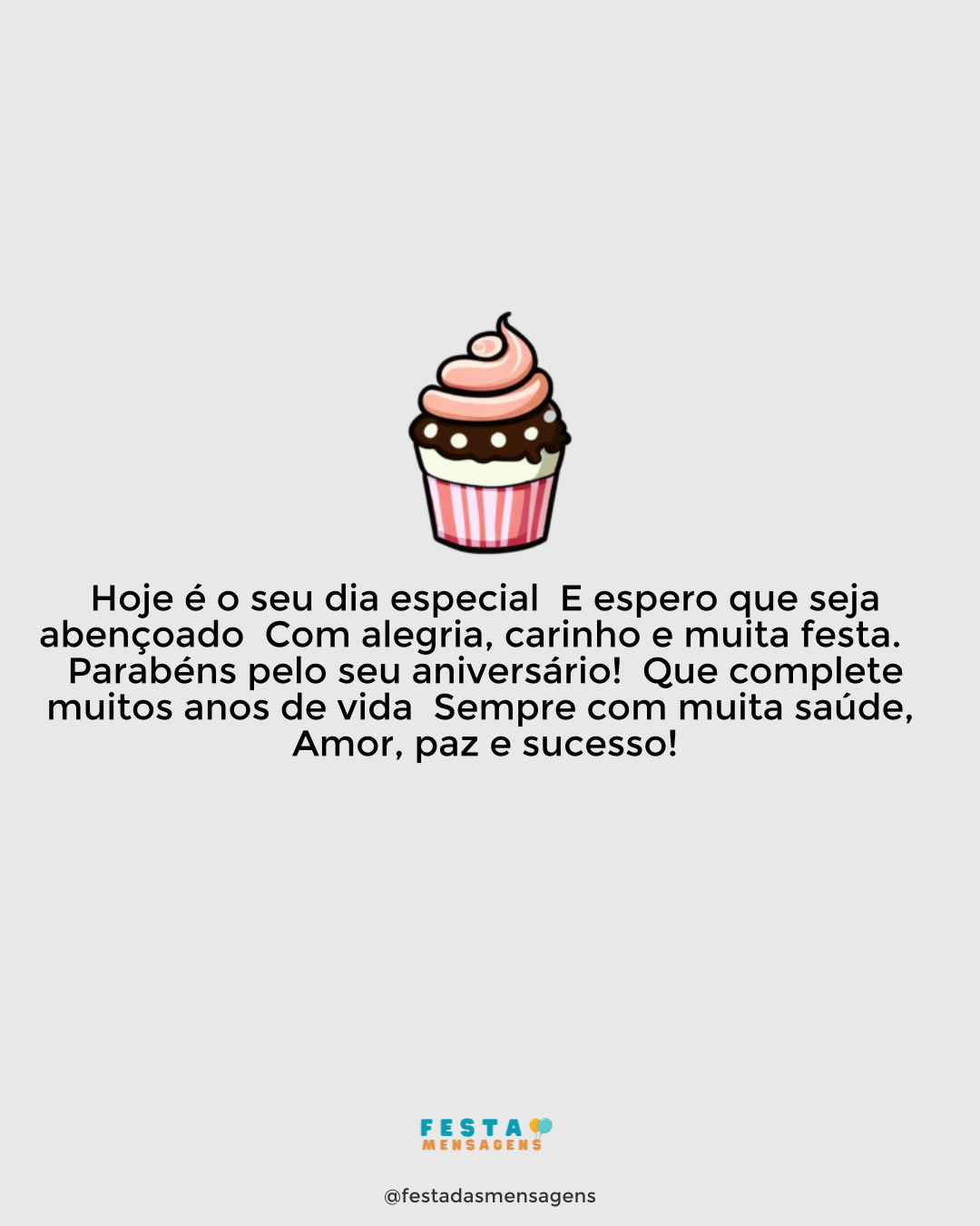 Hoje, o homem mais completo do mundo e o grande amor da minha vida celebra mais um aniversário. Nada me deixa mais feliz do que compartilhar este dia com você, meu bem. Parabéns! Que o amor entre nós não pare de crescer e a alegria de viver esteja sempre presente no seu coração. Prometo amar e cuidar de você com empenho e dedicação toda vida. Feliz Aniversário!