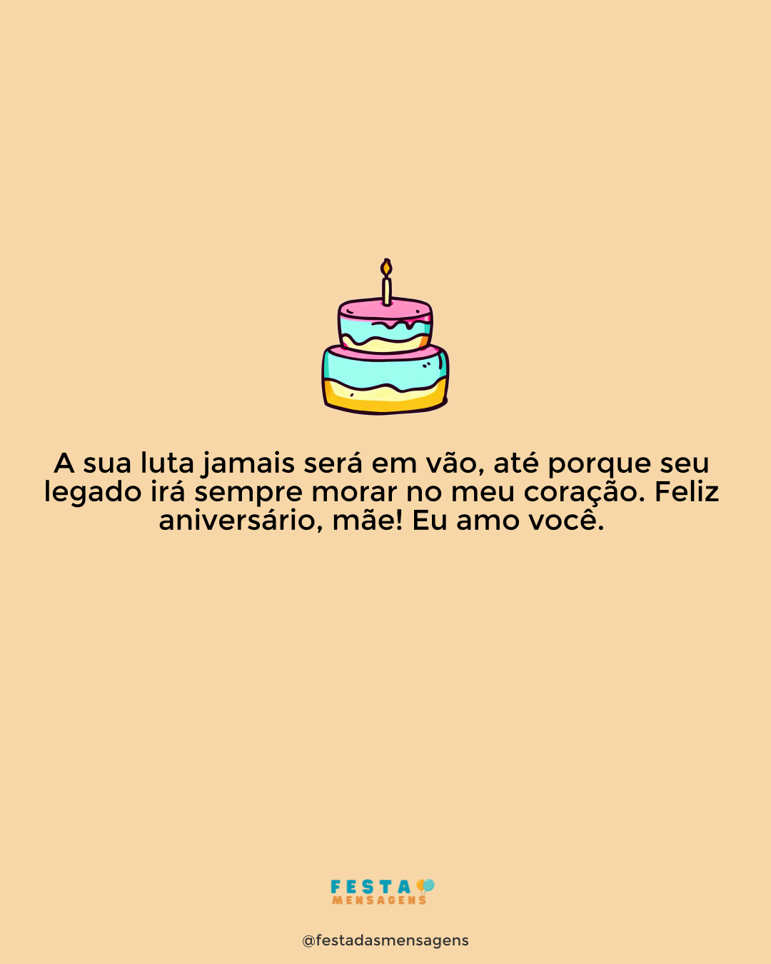 Tudo aquilo que sou, ou pretendo ser, devo a um anjo, minha mãe. - Abraham Lincoln Mãe, as palavras mais lindas do mundo não conseguem explicar aquilo que o meu coração sente por você. Você tem um papel essencial em tudo aquilo que eu sou e em tudo aquilo que algum dia eu vou ser. Todas as minhas conquistas se tornaram realidade porque você lutou e se sacrificou por mim. Neste dia quero que saiba que eu daria a minha vida por você, se fosse preciso! Feliz Aniversário, querida mãe!