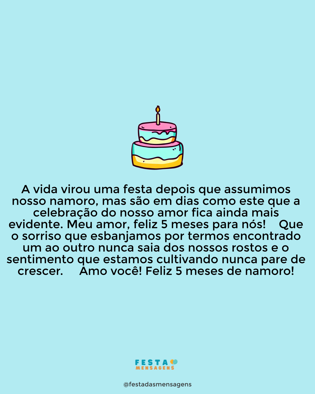 Há 11 meses, Deus me enviou um presente: um amor. Eu abri meus braços e recebi esse amor com muito carinho e afeto e hoje, 11 meses depois, celebramos o décimo primeiro mês de namoro. Você veio trazer alegria e felicidade para a minha vida. Veio me mostrar caminhos que eu nem imaginava. Aprendo com você todos os dias e sinto que meus dias são mais doces quando estou ao seu lado. Que toda esta felicidade siga iluminando o nosso caminho. Você significa muito para mim, meu amor, e o nosso namoro é razão da minha alegria!