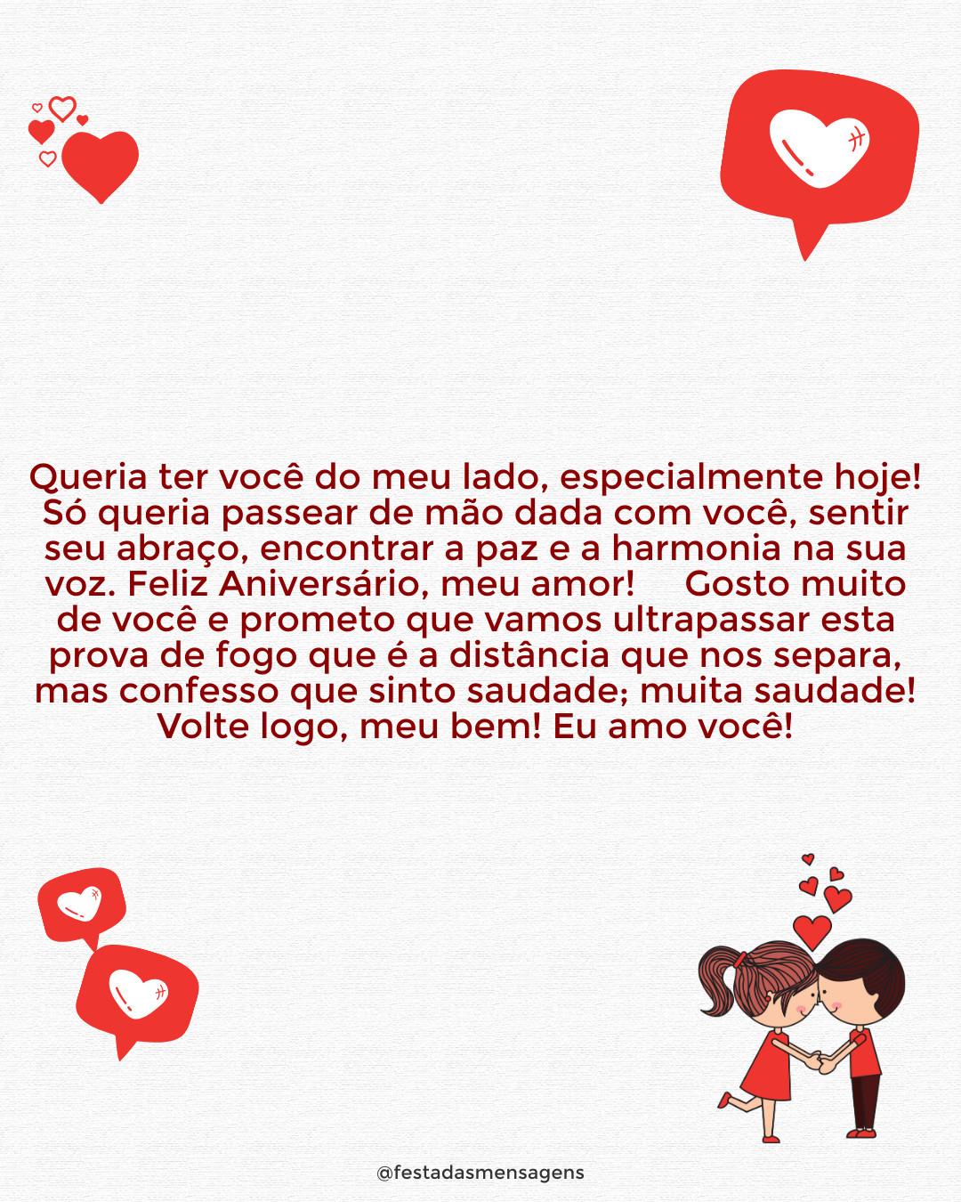 Filho, parabéns pelos seus treze anos de vida! Eu sou um pai muito feliz e realizado, orgulhoso e vaidoso por ter um filho assim tão especial. Divirta-se muito neste seu dia, meu bem! Você é praticamente um adolescente e eu estou torcendo para que essa etapa que você está experimentando devagarinho seja extraordinária, do jeito que seu coraçãozinho merece. Quero muito que você saiba e jamais se esqueça que eu estou e sempre irei estar ao seu lado. Você é simplesmente o grande amor da minha vida. Feliz aniversário, filho!