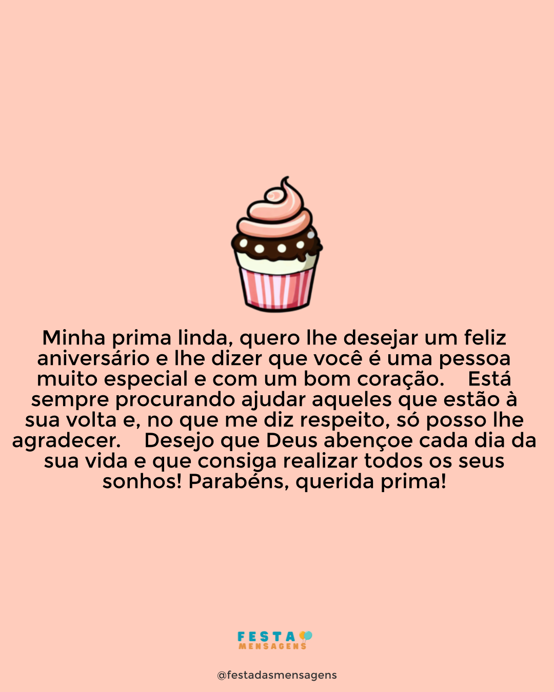 Você é a tia que todo mundo deveria ter na vida e é também a melhor madrinha que existe. Sou uma pessoa de sorte, sabe? Ter assim uma pessoa na família é maravilhoso. Querida dinda, tenha um aniversário fenomenal! Porque você sempre escutou minhas incertezas e tristezas, e sempre esteve ao meu lado como uma mãe eu lhe desejo um dia cheio de cores que você goste, de sons que adore, de sensações que ame. Parabéns, titia! Se pudesse eu lhe oferecia o presente mais caro do universo, mas não posso e por isso lhe entrego o melhor de mim: o amor. Este é meu presente de todos os dias para você. Feliz aniversário!