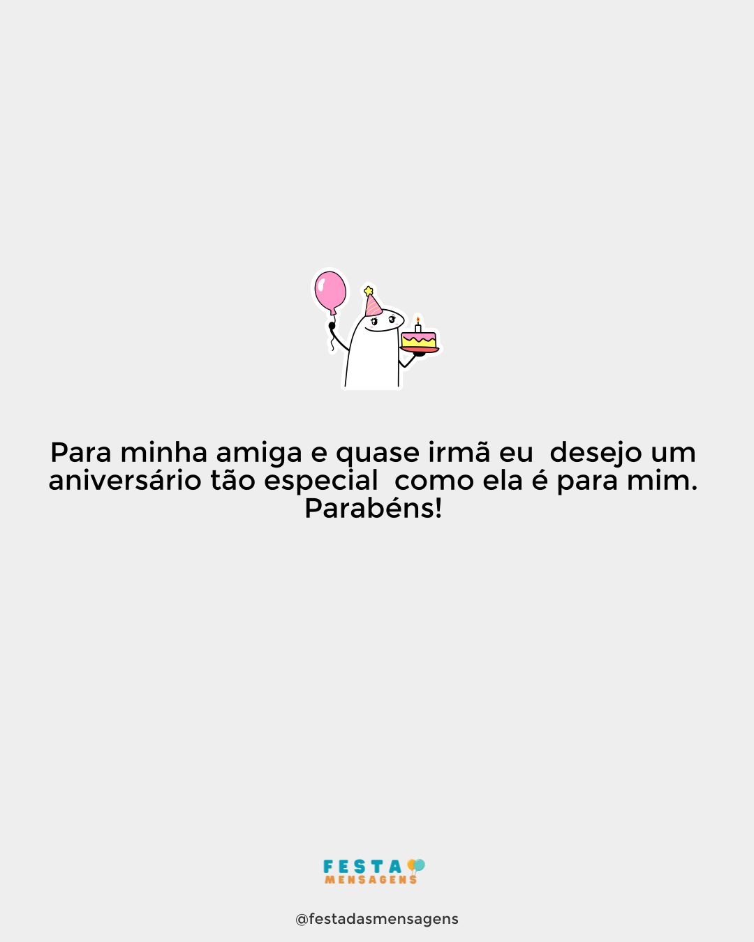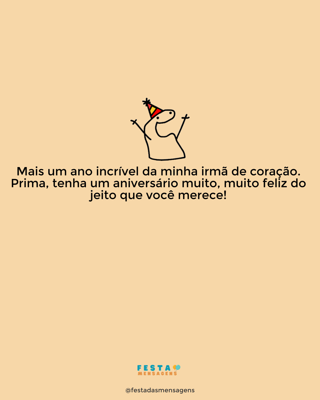 Parabéns, minha prima maravilhosa, minha grande amiga e minha excelente comadre! Você é o meu maior apoio e grande companheira. Só posso agradecer a Deus por me ter dado uma prima e comadre tão maravilhosa! Obrigado por trazer tanta felicidade para a minha vida e por ter estado sempre ao meu lado! Espero que tenha o dia de aniversário maravilhoso que você merece!