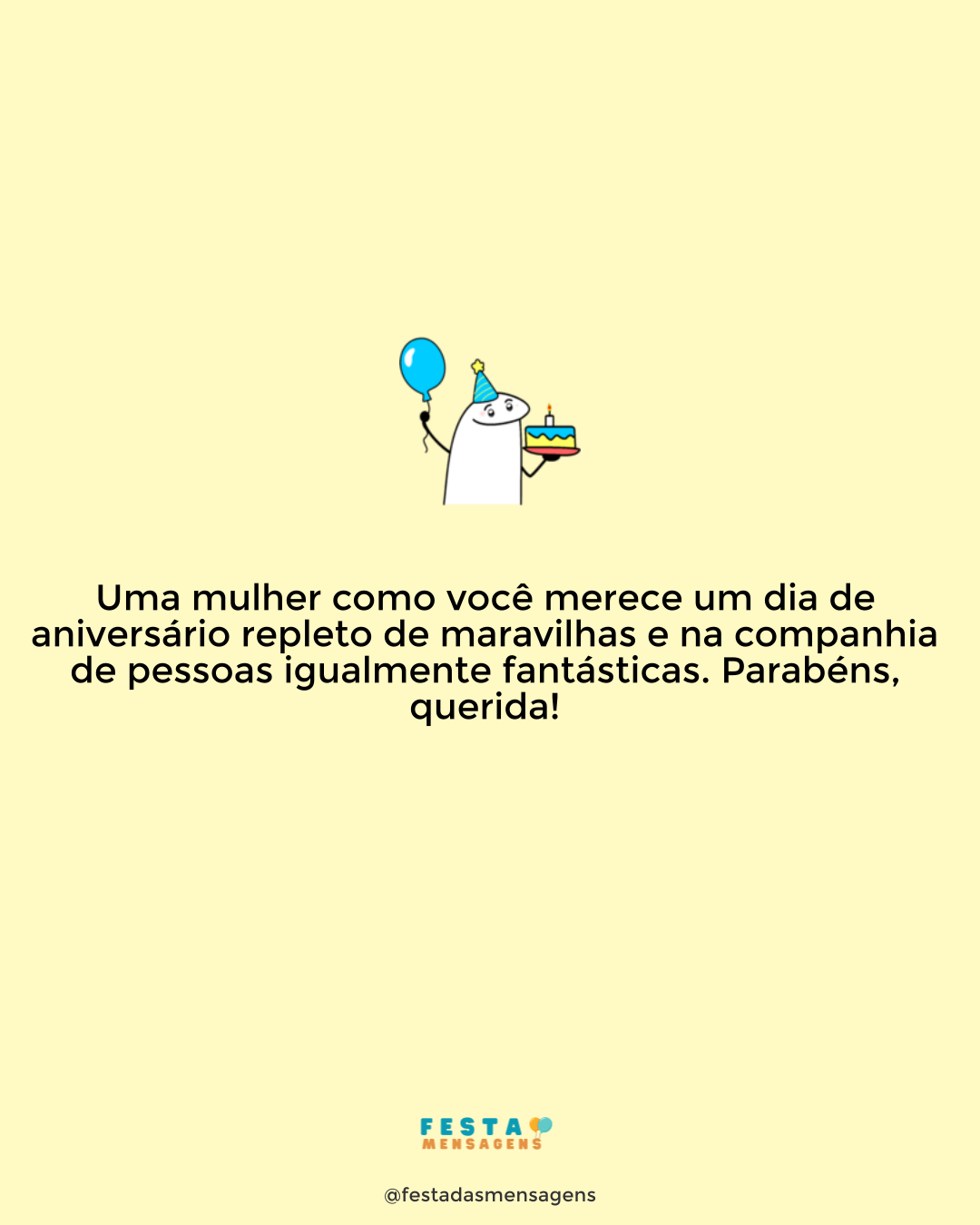É com muita alegria que hoje lhe dedico minhas palavras e atenção. Mais do que a esposa do nosso querido pastor, você é um ser humano lindo, com a bênção do Senhor e a inspiração da vida no olhar. Tenha um aniversário muito especial! Espero que se divirta intensamente. Aproveite cada instante deste novo dia e prepare-se para o próximo ano que será ainda mais abençoado. Continue a caminhar sob a palavra do Senhor e a correr atrás de tudo aquilo que lhe traz alegria e felicidade. Parabéns!