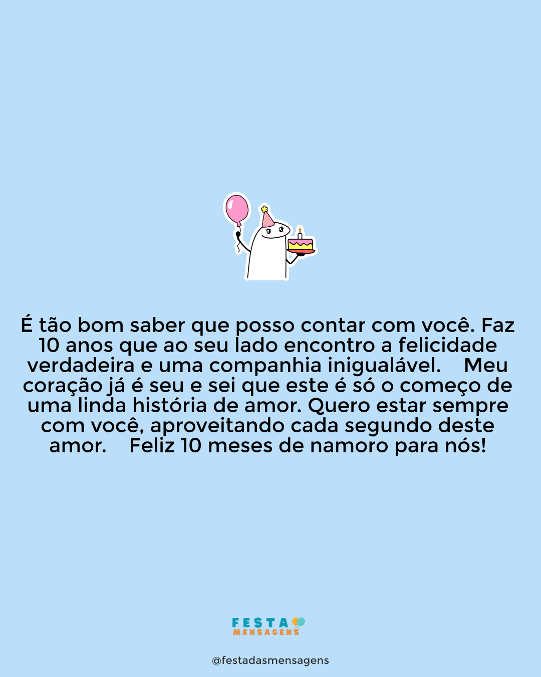 Hoje estamos completando 9 meses de namoro, mas todos os dias ao seu lado são motivo para comemorar. Fico muito feliz por termos nos encontrado e decidido seguir a vida lado a lado. Você me completa de uma forma que nunca imaginei que seria possível. Só posso agradecer por esses 9 meses de carinho e amor. Amo muito você e espero passar cada vez mais tempo ao seu lado!