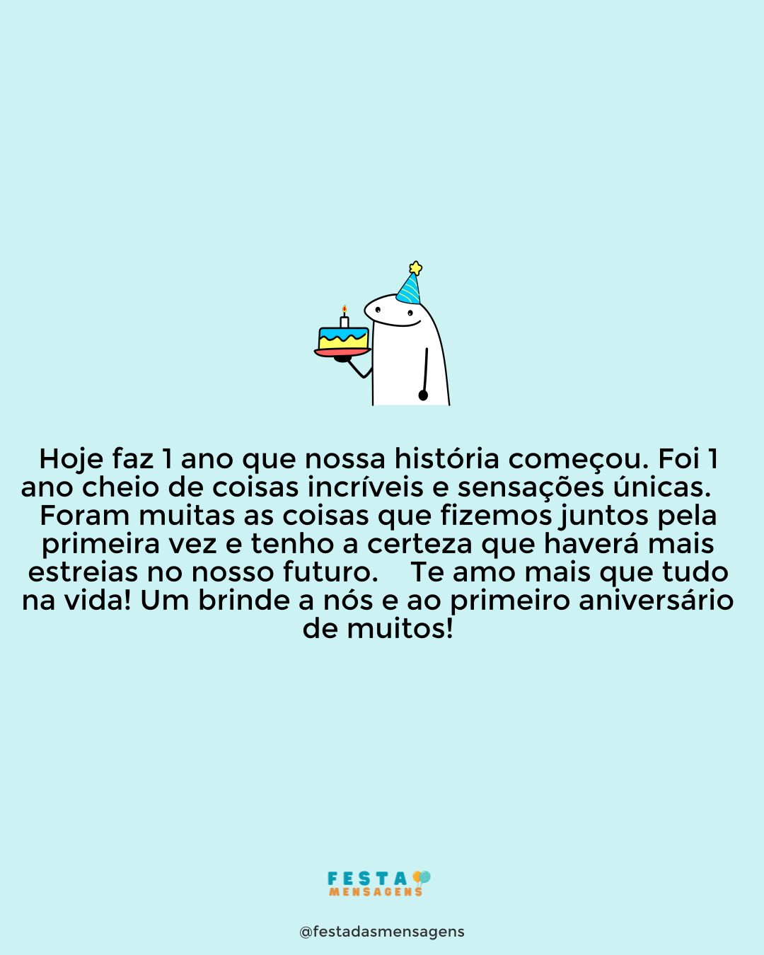 Há um ano Deus nos abençoou com a semente do amor que nós em conjunto plantamos nos nossos corações e todos os dias regamos e cuidamos para que cresça muito e fortaleça! Te amo mais que tudo neste mundo! Feliz primeiro aniversário de namoro!