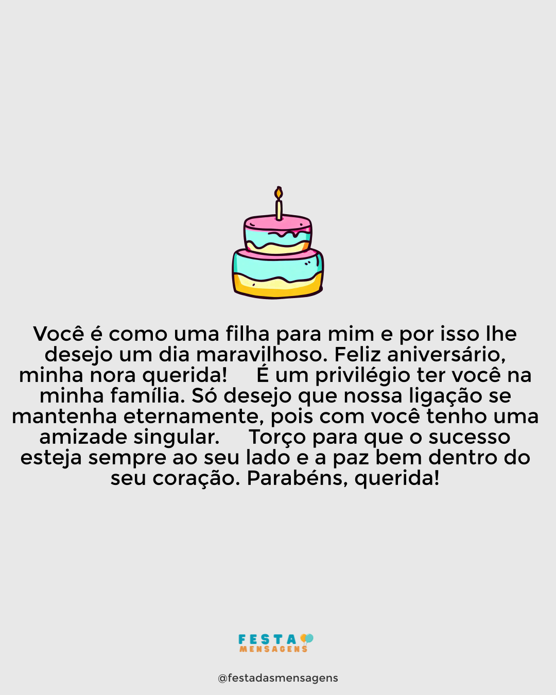 Minha vovó do coração, em 80 anos você viveu muitas aventuras e proporcionou incontáveis alegrias para muita gente, mas hoje é a sua vez de receber de volta tudo que fez e ainda faz pelos outros. Só espero que um dia eu também consiga ter uma história de vida tão completa como a sua e que ainda tem tudo para continuar acumulando feitos e vitórias. Vovó, você é uma inspiração e eu não poderia estar mais feliz por vê-la viver esta data tão importante e marcante. Feliz 80 anos! Amo muito você!