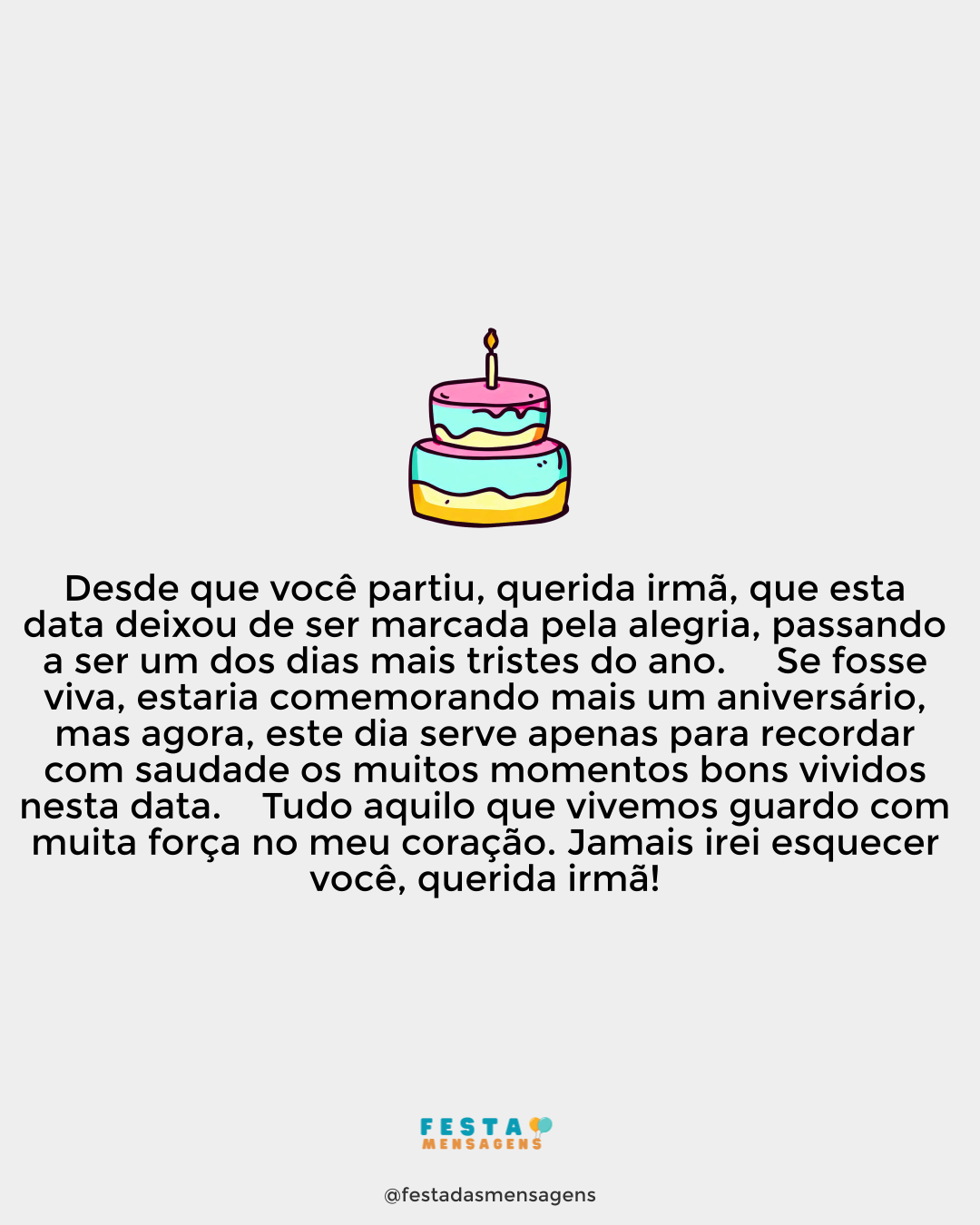 Querida mamãe, hoje queremos parabenizá-la por mais um ano de vida, e agradecer a Deus pela maravilhosa graça com que nos abençoou quando colocou você como nossa mãe. Feliz aniversário! Hoje somos as pessoas que somos graças a você, que sempre nos orientou pelo caminho do Senhor. Mas todos os dias nos esforçamos para ser cada vez melhores, e assim fazermos com que você se orgulhe de nós. Que Deus a abençoe, mãe, e hoje e sempre lhe conceda muitas bênçãos e muita felicidade. Nós a amamos muito!