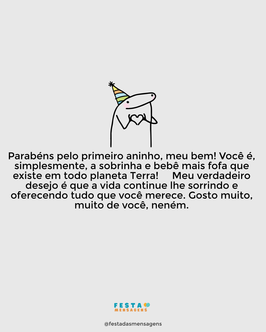 Que seu bebê seja muito feliz hoje e sempre, querida amiga. Eu sei como este é um dia importante para você, para seu filho e para sua família e é por isso que estou aqui enviando boas energias. Celebrem muito este momento porque cada novo ano é especial. Abrace seu filho, receba o carinho dos amigos e aproveite muito. Seu bebê lindo merece tudo de bom neste novo ano de vida e você também! Parabéns!