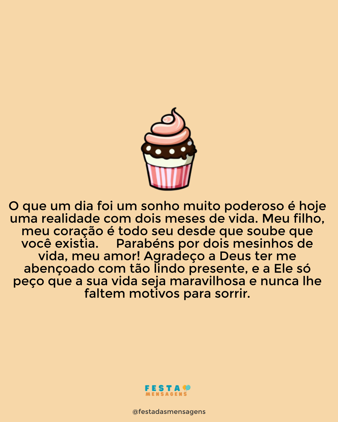 Parabéns! Tenha um feliz aniversário, mamãe! Gostaria que você estivesse do meu lado, mas a distância que nos separa não permite. É que você é a pessoa que mais amo no mundo, a mulher, a mãe! Confesso que sinto saudade; sinto falta de abraçar você, de sorrir quando escuto sua voz, de enxergar seu rosto iluminado. Vou sempre amar você. Por favor, volte logo, mamãe!