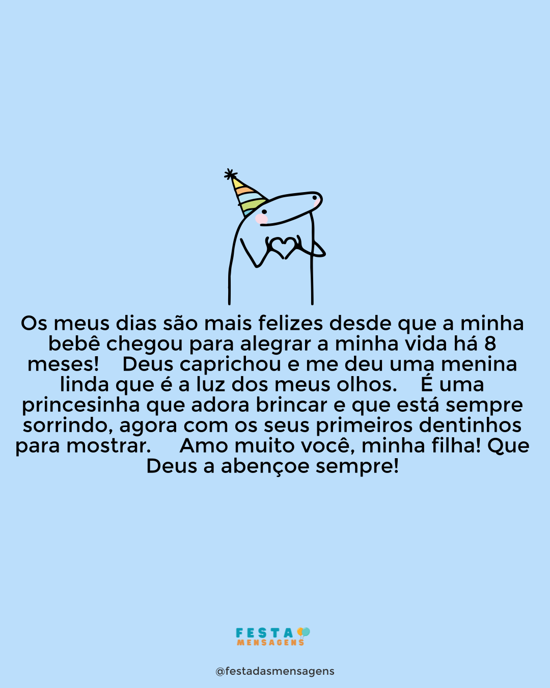 Um ano se passou desde que você chegou, meu lindo sobrinho, e só posso dizer que desde então a alegria invadiu nossas vidas. Você é o bebê mais amoroso que o mundo já viu e no meu coração fez nascer um amor sem igual. Não é meu filho, mas para sempre defenderei e amarei você como se fosse. Disso poderá ter sempre certeza. Parabéns, amado sobrinho!