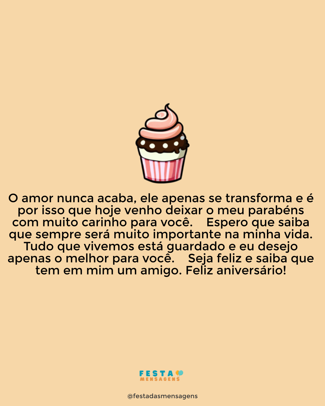 Feliz Aniversário! Desejo que seu dia seja todo alegria e no seu coração não falte paz e amor.
