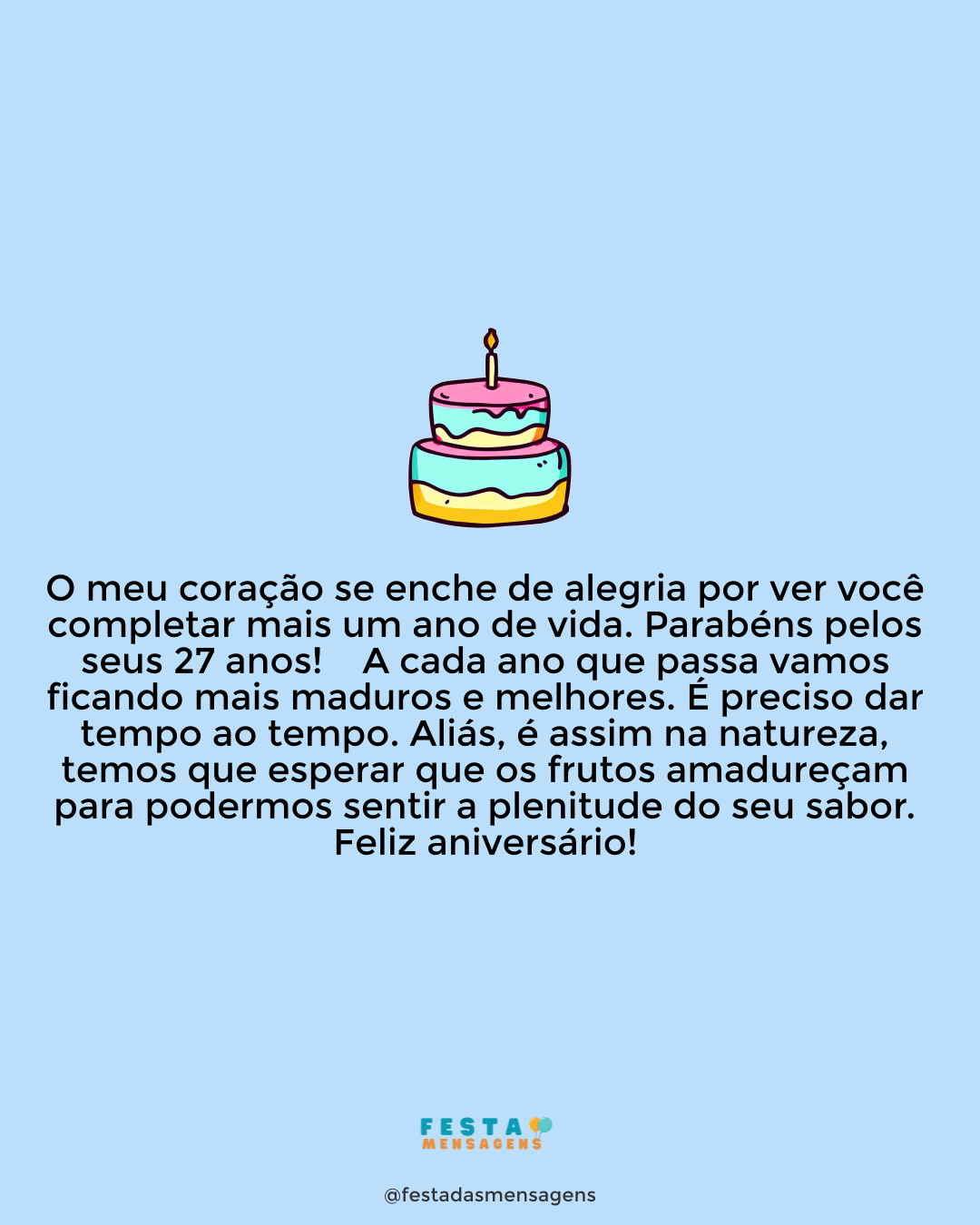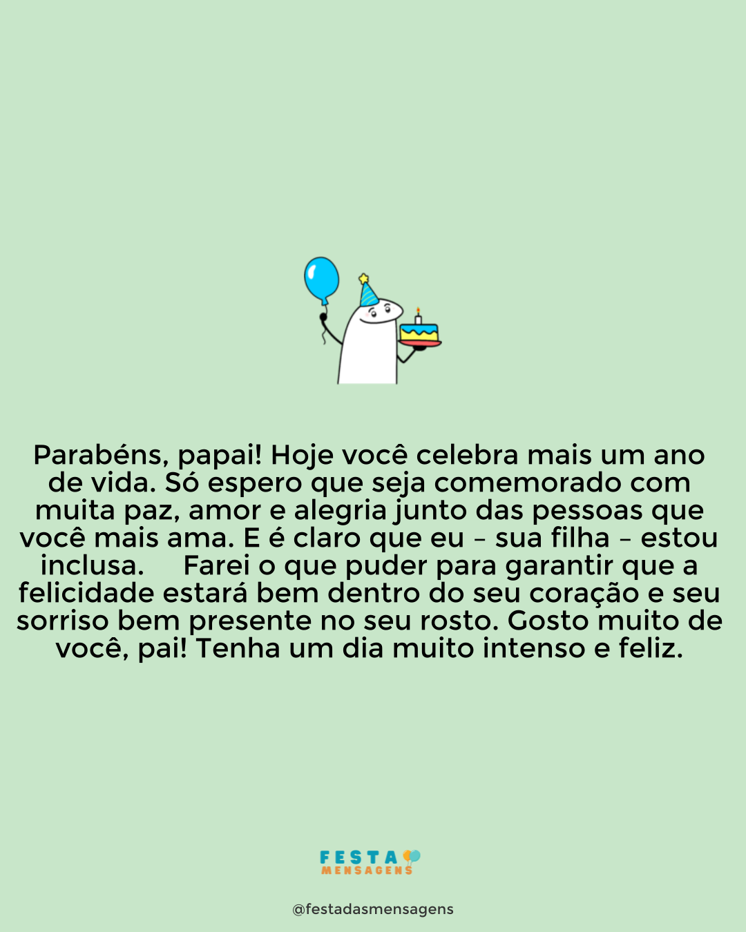 Hoje é um dia para celebrar a vida e todas as maravilhas que ela tem a oferecer! Feliz aniversário! Saiba que você é mais do que um familiar, um parente; você é parte de mim, alguém que eu admiro profundamente. E talvez seja exatamente por isso que eu desejo que esta nova etapa da sua vida seja repleta de saúde, amor e felicidade. Ah, e que você sempre encontre motivos para sorrir, forças para vencer desafios e pessoas especiais ao seu redor. Isso sim é importante! Aproveite cada instante e nunca deixe de acreditar nos seus sonhos.