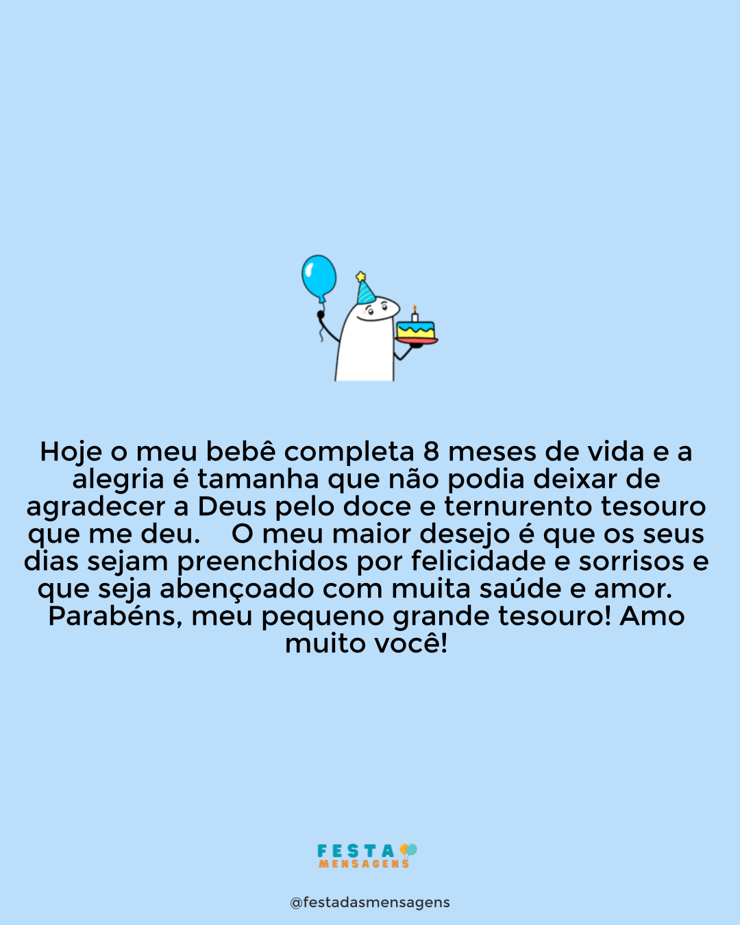 Feliz aniversário, meu irmão! Hoje celebramos seu primeiro aninho com muita, muita alegria. Que Deus sempre abençoe seus dias e encha sua vida de amor e felicidade. Você é uma luz na nossa vida, querido!