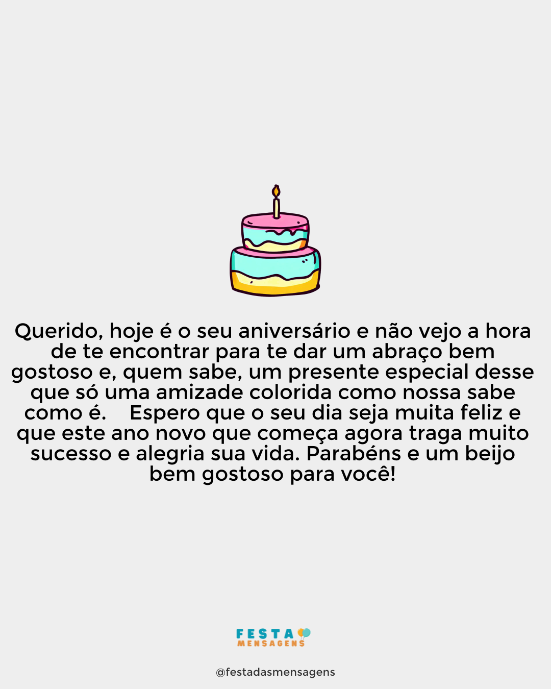 Sabe admito que às vezes fico meio perdido no corre corre do dia a dia, mas jamais esqueceria desse dia tão especial para você, quero comer bolo e assisti-la apagando as velinhas. Fico feliz, pois, daqui a pouco estaremos juntos pra festejar esse momento e a vontade de te encontrá-la é sempre um motivo de festa não é preciso ser o seu aniversário, pois, você é meu motivo de grande alegria. Meu amor você está iniciando agora uma nova etapa de sua jornada nesse mundo, por isso peço aos anjos que cubram de luzes o seu caminho. Amorzão parabéns e Feliz Aniversário.