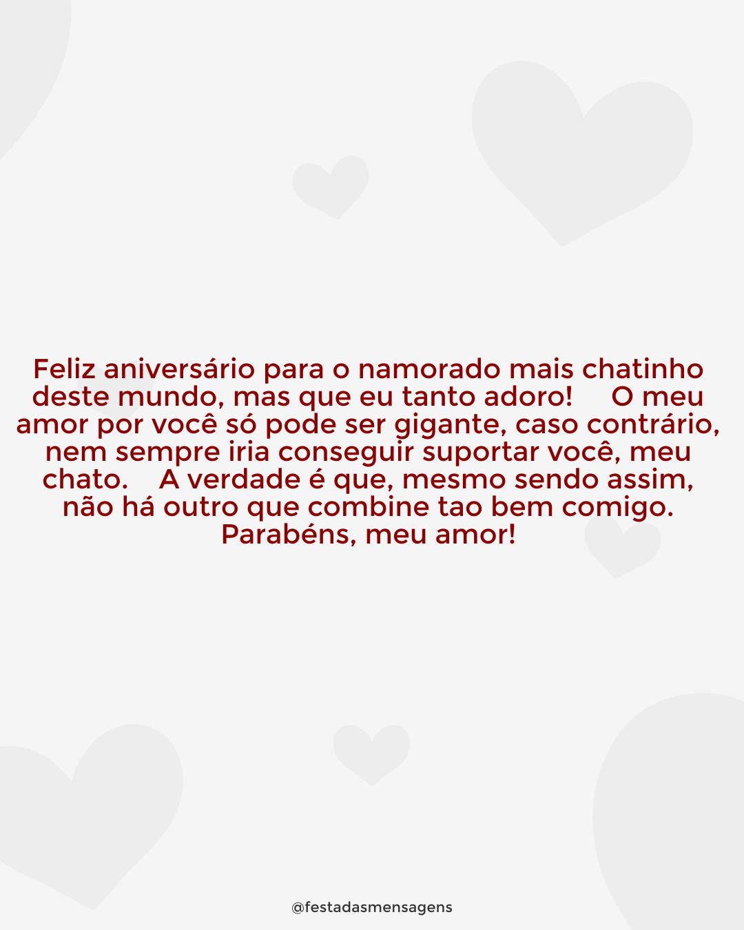 Há três anos eu tive a sorte de encontrar e me apaixonar por você. Você é o melhor que já me aconteceu na vida, e três anos depois sinto que amo você um pouco mais a cada dia. Feliz aniversário de namoro! Ao seu lado sou muito feliz e sinto uma segurança como nunca antes senti. O que nos une não é apenas amor e paixão, mas também amizade, respeito, admiração e cumplicidade. Juntos somos uma dupla fantástica, e espero que continuemos assim por muitos anos. Te amo!