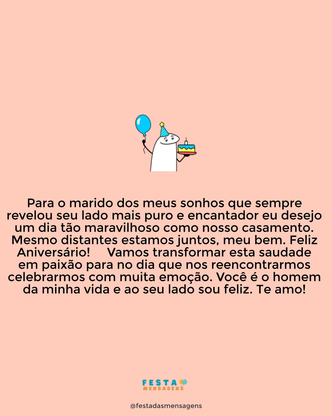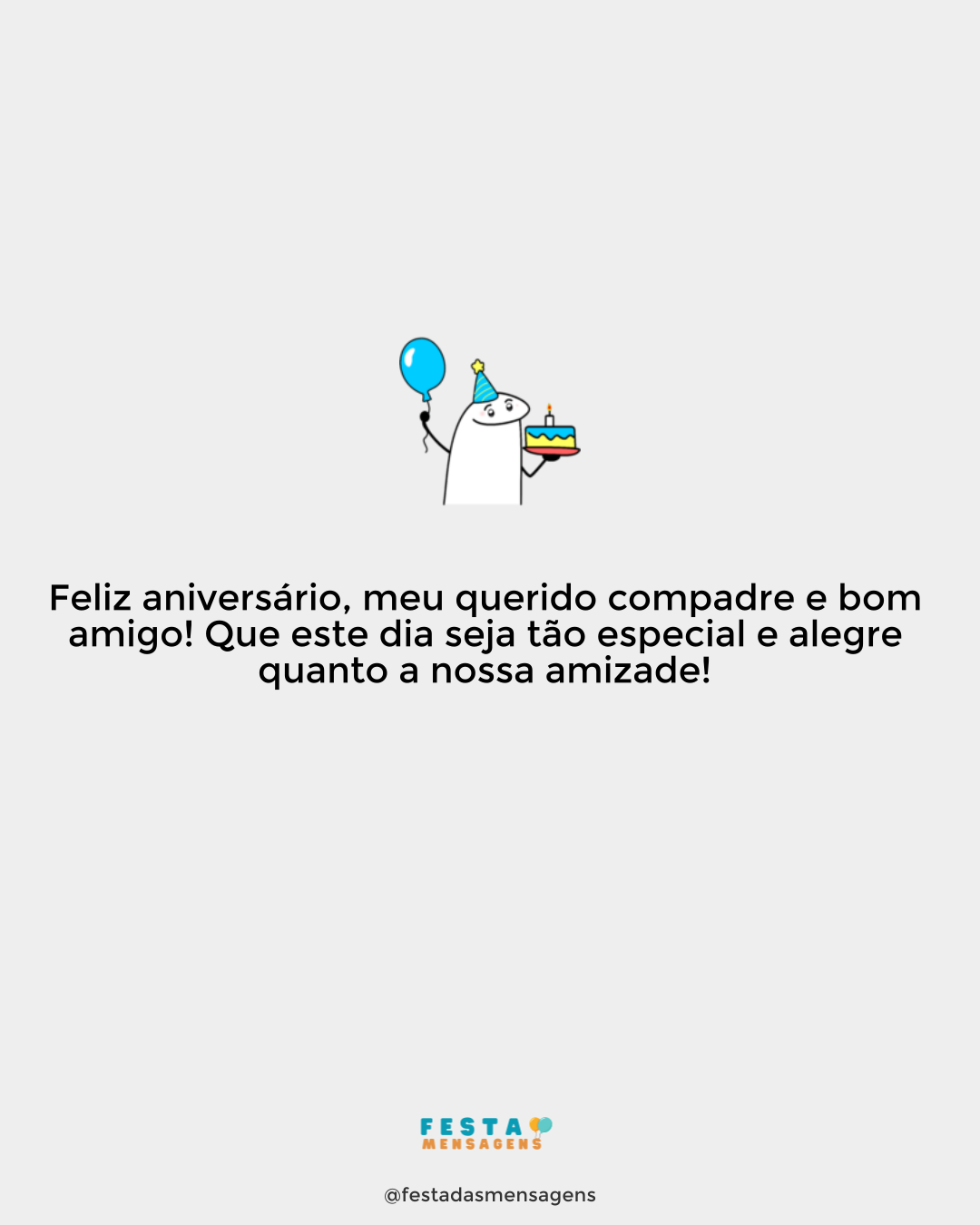 Feliz Aniversário, padrinho! Apesar da distância que vive entre nós, eu nunca esqueço a pessoa importante que você é e sempre foi para mim. Gostaria que as coisas fossem diferentes e pudéssemos estar juntos mais vezes, mas entendo que a vida é assim. De qualquer modo, eu tenho certeza que em breve vamos trocar um abraço caloroso e mil conversas frente-a-frente. Tenha um dia muito especial, padrinho!