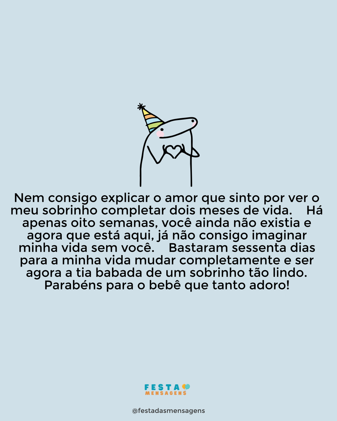 Faz hoje dois anos que meu sobrinho chegou para encantar todo o mundo e derreter meu coração. Não há como descrever o que senti quando peguei nele pela primeira vez ao colo, mas é certo que irei acarinhar sempre esse momento. Peço a Deus que cuide dele e que nunca deixe que nada de ruim lhe aconteça. Espero que chovam bênçãos sobre meu sobrinho todos os dias para que tenha uma vida longa e feliz. Que o Pai do Céu seja seu guia e seu protetor! Que este seja um bebê abençoado! Tenha um santo aniversário, amado sobrinho!