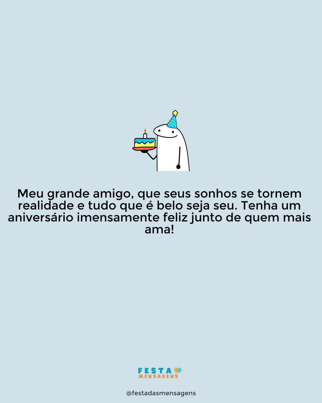 Ter você na minha vida é um presente precioso, e hoje, no seu aniversário, quero celebrar a pessoa incrível que você é, o ser humano lindo que tenho o privilégio de conhecer! Seu jeito especial faz o mundo mais bonito, e sua bondade e carinho espalham alegria por onde passa. Estou torcendo para que este dia seja repleto de amor, abraços sinceros e momentos inesquecíveis. Que a vida sempre lhe sorria e que este ano seja repleto de bênçãos e conquistas, bem do jeito que você merece. Feliz aniversário!