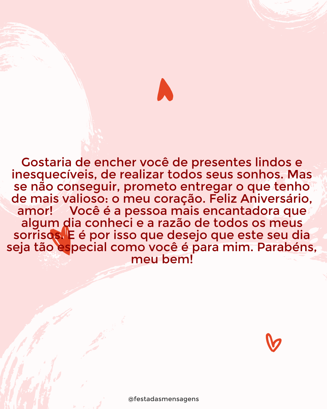 Para você, bisavó, eu desejo o melhor da vida! Que seu novo ano de vida chegue com muita saúde, paz e alegria. Você é um exemplo para mim e para toda a nossa família. É o pilar que nos une e nos serve como fonte de força e amor. Eu agradeço por ter uma bisavó como você e por poder estar aqui para celebrar mais um grande ano da sua vida. Felicidades e muito amor!