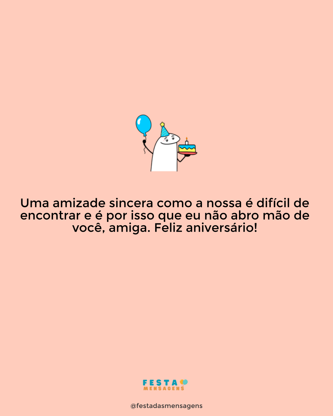 Amiga, eu sei que não é todo mundo que consegue ver o que eu vejo em você. Talvez seja porque, por saber o que quer da vida, possa parecer chata para algumas pessoas ou então por ser o tipo de mulher que quando entra em um lugar rouba todas as atenções. O que importa é que hoje é dia de se rodear só de pessoas que a amam e festejar este dia do começo ao fim. É seu aniversário e hoje tudo é para você! Aproveite muito e tenha um dia maravilhoso, como você!
