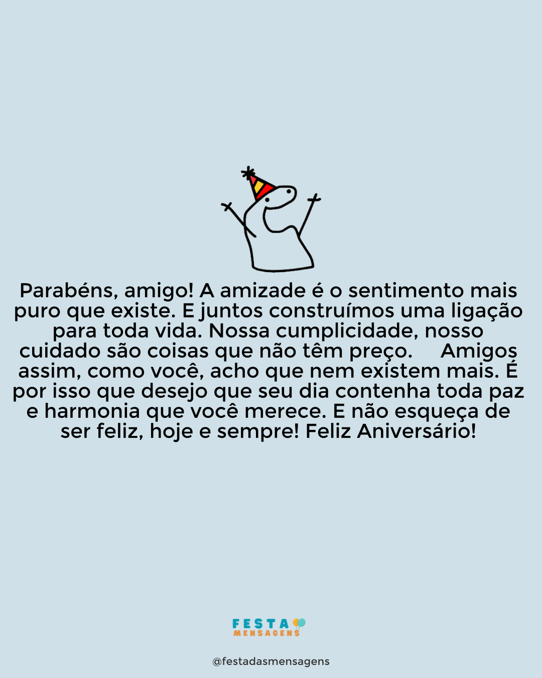 Parabéns ao amigo que sempre foi e é tudo para mim. Sim, estou me referindo a você que é como um irmão para mim. Parabéns pela pessoa incrível que é e por ser uma inspiração pra mim. Sinto que nosso vínculo cresce mais forte a cada novo dia, e nada nem ninguém poderá nos separar. Divirta-se muito hoje e orgulhe-se de tudo que conquistou até hoje.