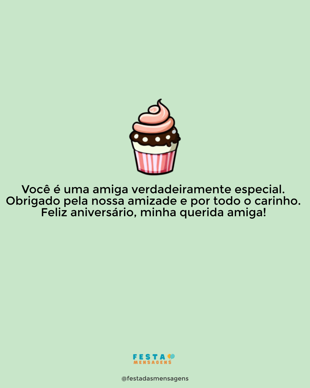 Diz o poeta: 'amigo é coisa para se guardar do lado esquerdo do peito', e você, minha amiga, não poderia ser diferente. Além de grande amiga, irmã na fé e em Jesus Cristo, é a mulher mais dotada na maior força do Espírito Santo, já conhecida por mim. É uma grande honra ser seu amigo! Nesta data de extrema alegria, gostaria de deixar consignado o meu abraço fraterno e parabéns pela data feliz do seu aniversário, junto à sua família e seus amigos que são muitos. Parabéns!
