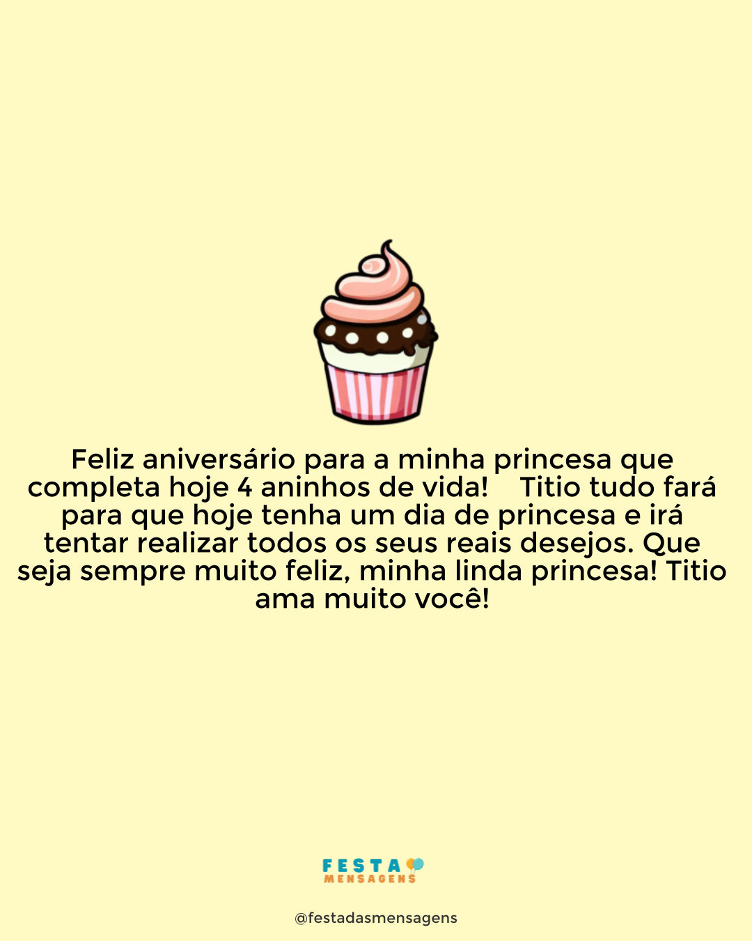 Feliz Aniversário! Nossa relação é ainda muito recente. Confesso que tenho simpatia por você! Mas tem de entender que não é fácil aceitar que novas pessoas entrem na nossa vida. Eu sei que você não pretender roubar o lugar da minha mãe, mas também não quero que você seja minha madrasta. Espero ser sua amiga um dia. Só isso! Beijo.