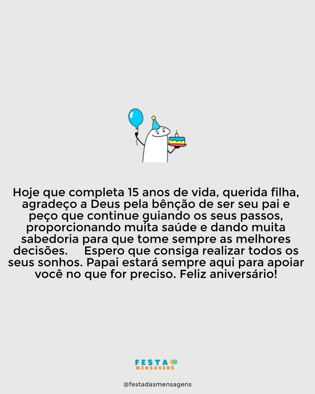 Você é e sempre será o meu primogênito, o menino que vi nascer, crescer e se tornar no ser humano lindo que é. Hoje, meu bem, celebramos mais um ano da sua vida e eu estou cheio de vontade de o abraçar. Parabéns! Nunca se desvie do seu caminho, nunca se afaste do que lhe traz alegria; nunca perca essa paz que mora no seu coração. Eu estarei sempre ao seu lado, meu amor, sempre! Divirta-se muito hoje e seja feliz todos os dias da sua vida!